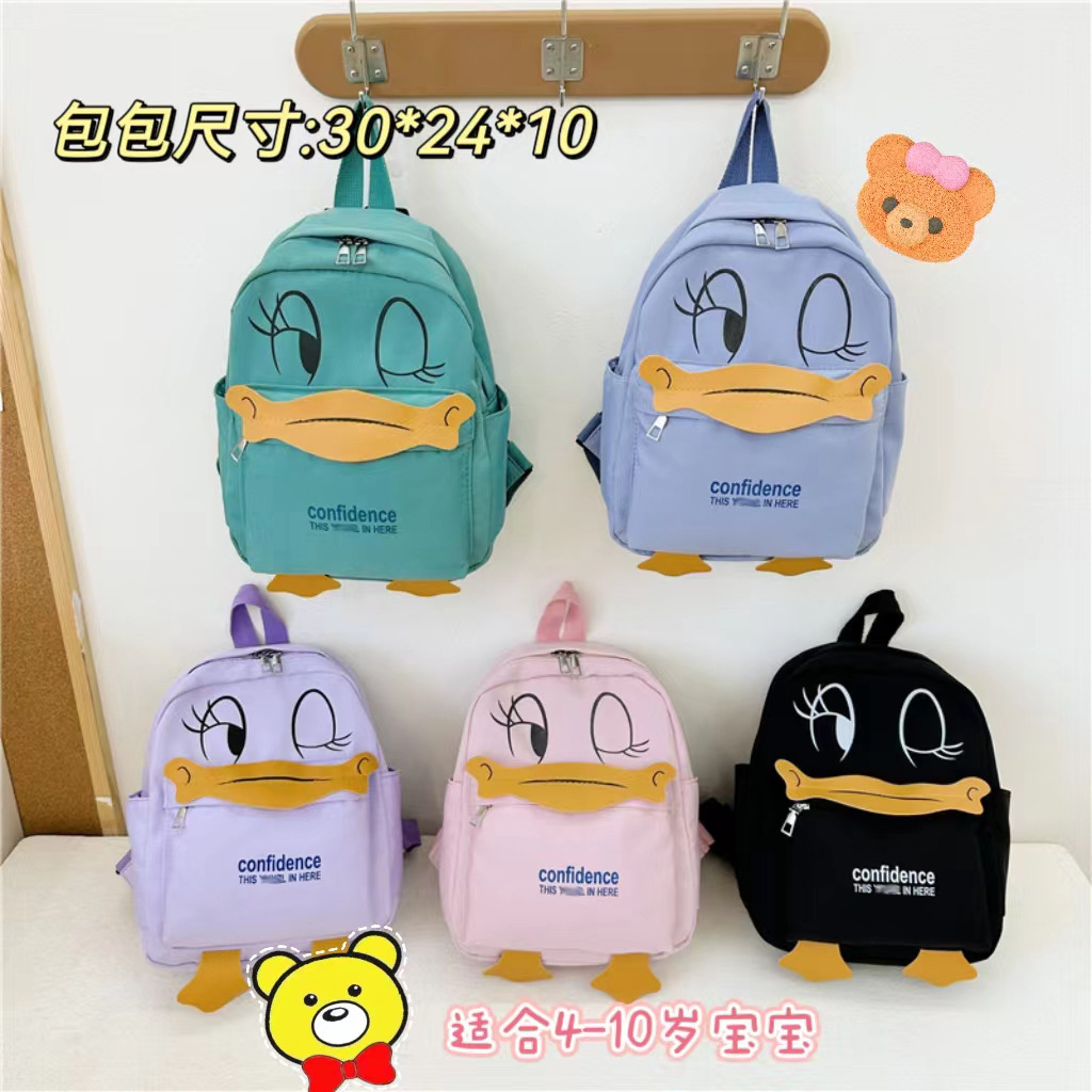 2023夏の新型アヒルの漫画のランドセルは大容量の幼稚園の中で大きいクラスのかばんの小銭入れの卸売りを包みます。