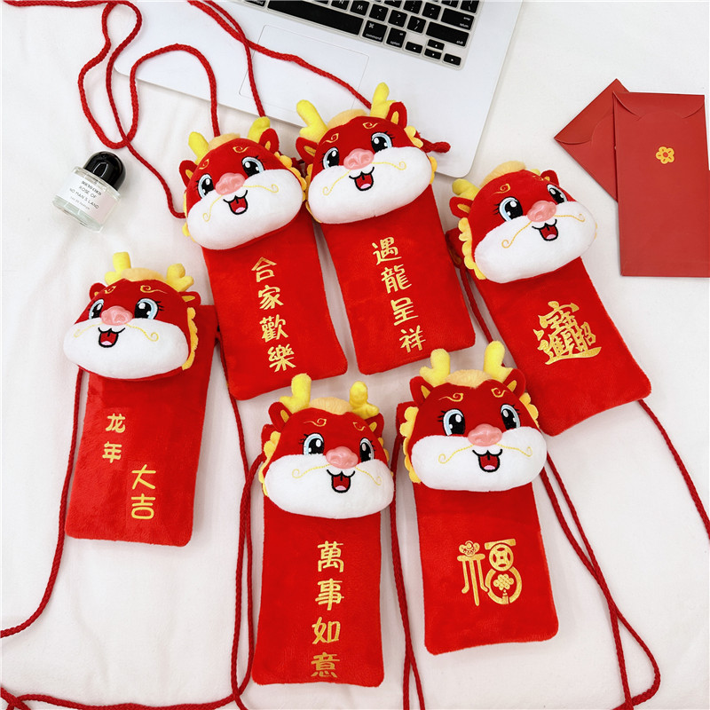 子供の正月の赤いバッグの竜人の漫画のショルダーバッグのかわいいぬいぐるみの新年の小銭は斜めのショルダーバッグの潮を飾ります。