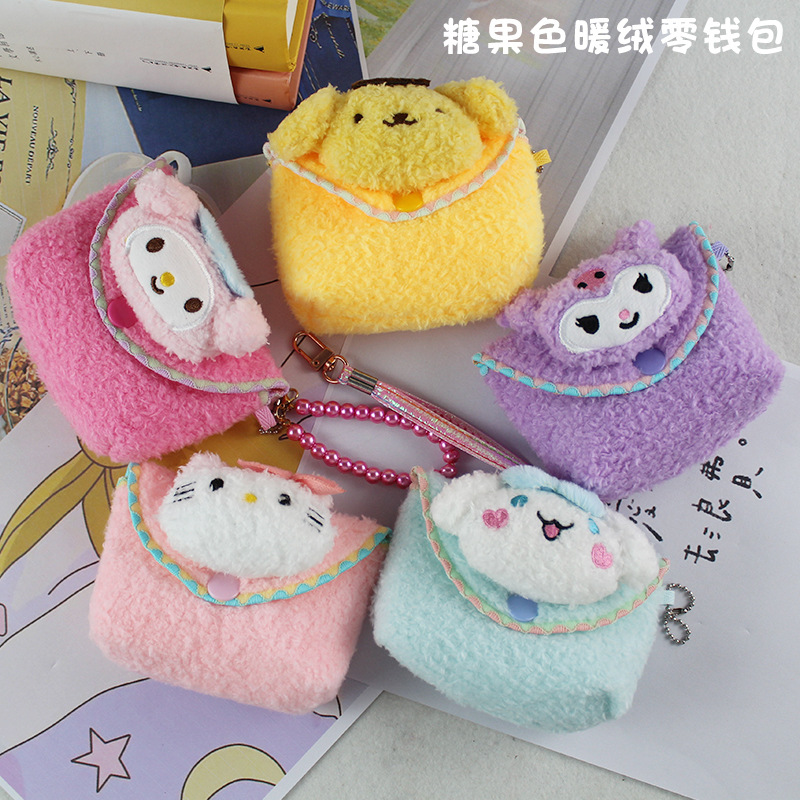 韓国シンプル風キャンディー色の暖かいベルベットの財布ミニかわいいカードバッグ収納バッグ口紅イヤホンバッグ