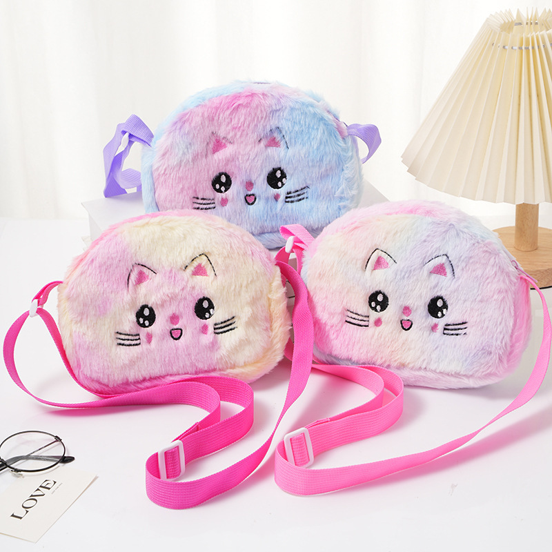 クリエイティブな新しい猫ぬいぐるみ漫画ショルダークロスボディバッグかわいい女の子収納半円小銭入れ