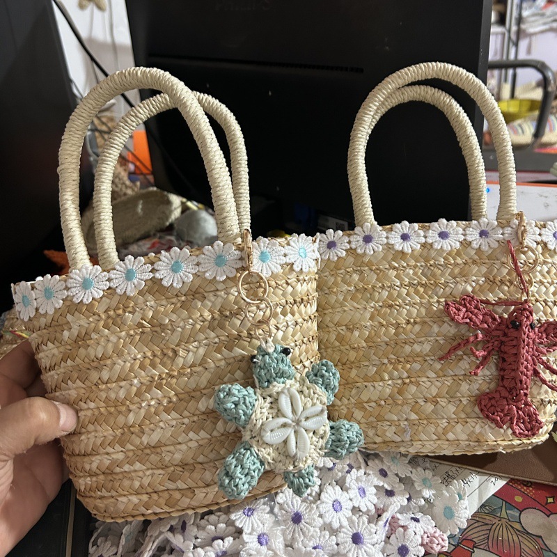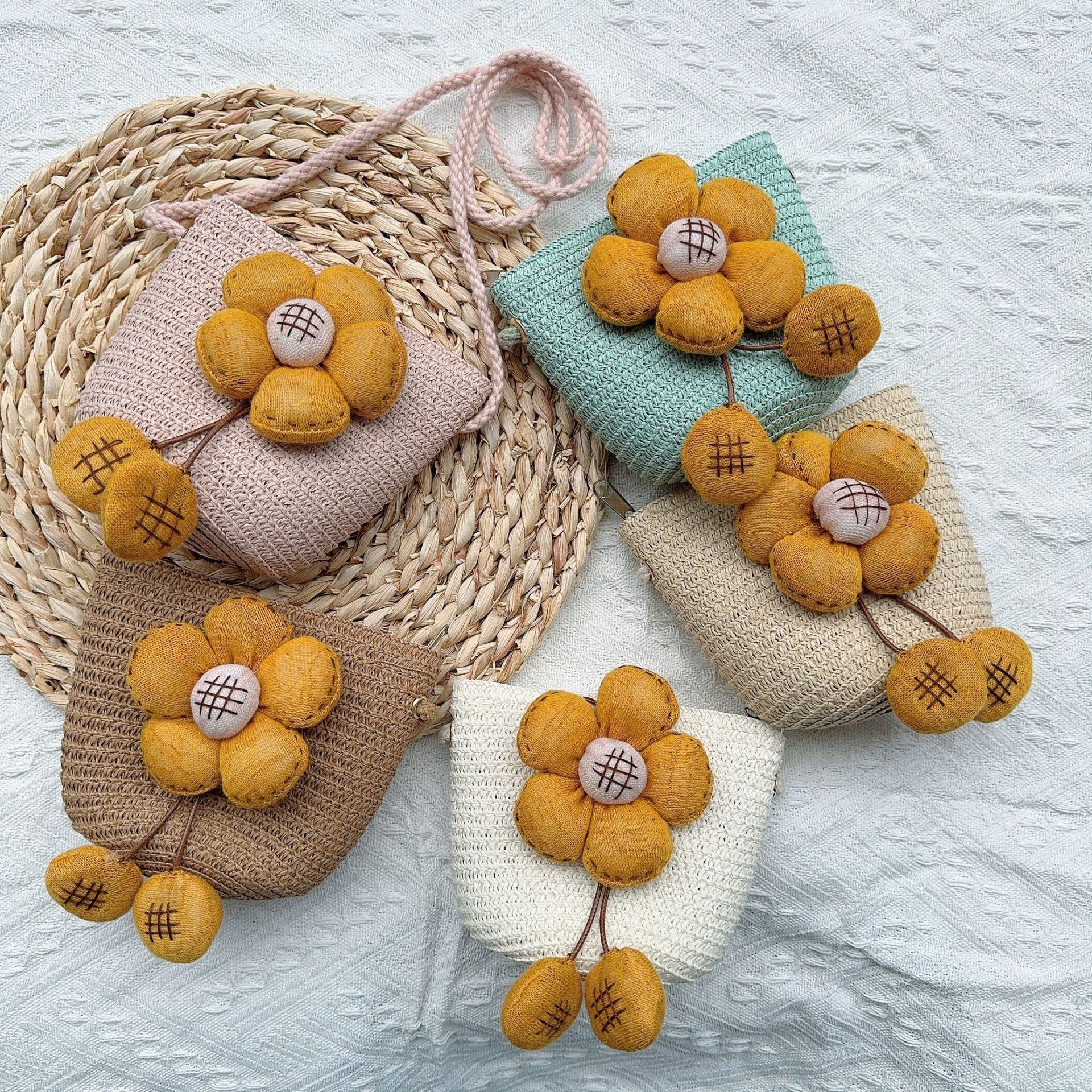 2024新型子供女の子かわいい花草編みバッグ旅行観光地海辺斜めがけバッグ小銭入れ帽子バッグ
