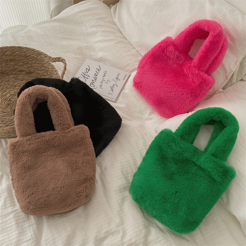 Ins韓系子供のぬいぐるみのハンドバッグ冬の親子の高級感はウサギの毛の純色の小さい大衆の小銭入れの潮に似せます。
