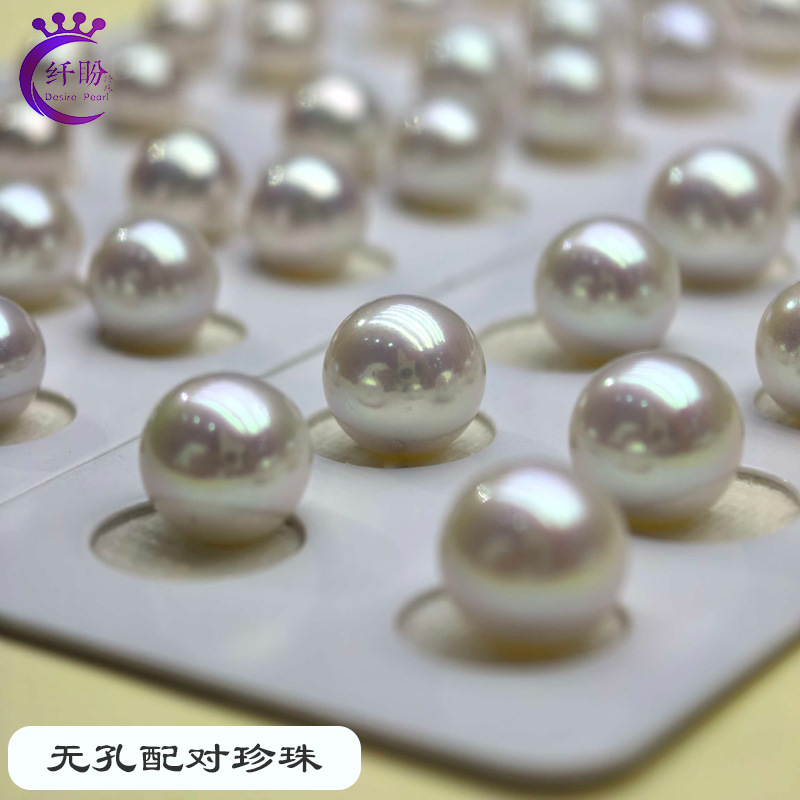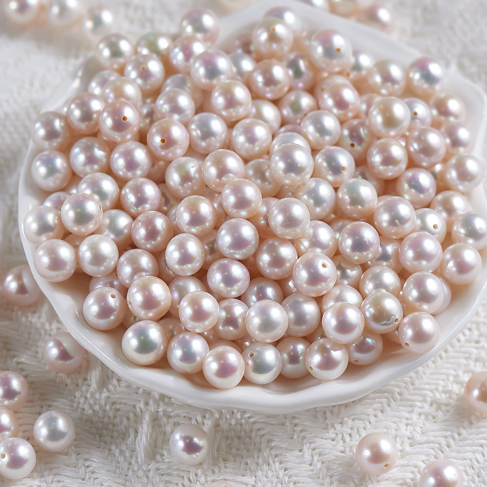 極光ほぼ真円天然淡水真珠散珠半穴裸珠真珠卸売り天然真珠ピアス部品