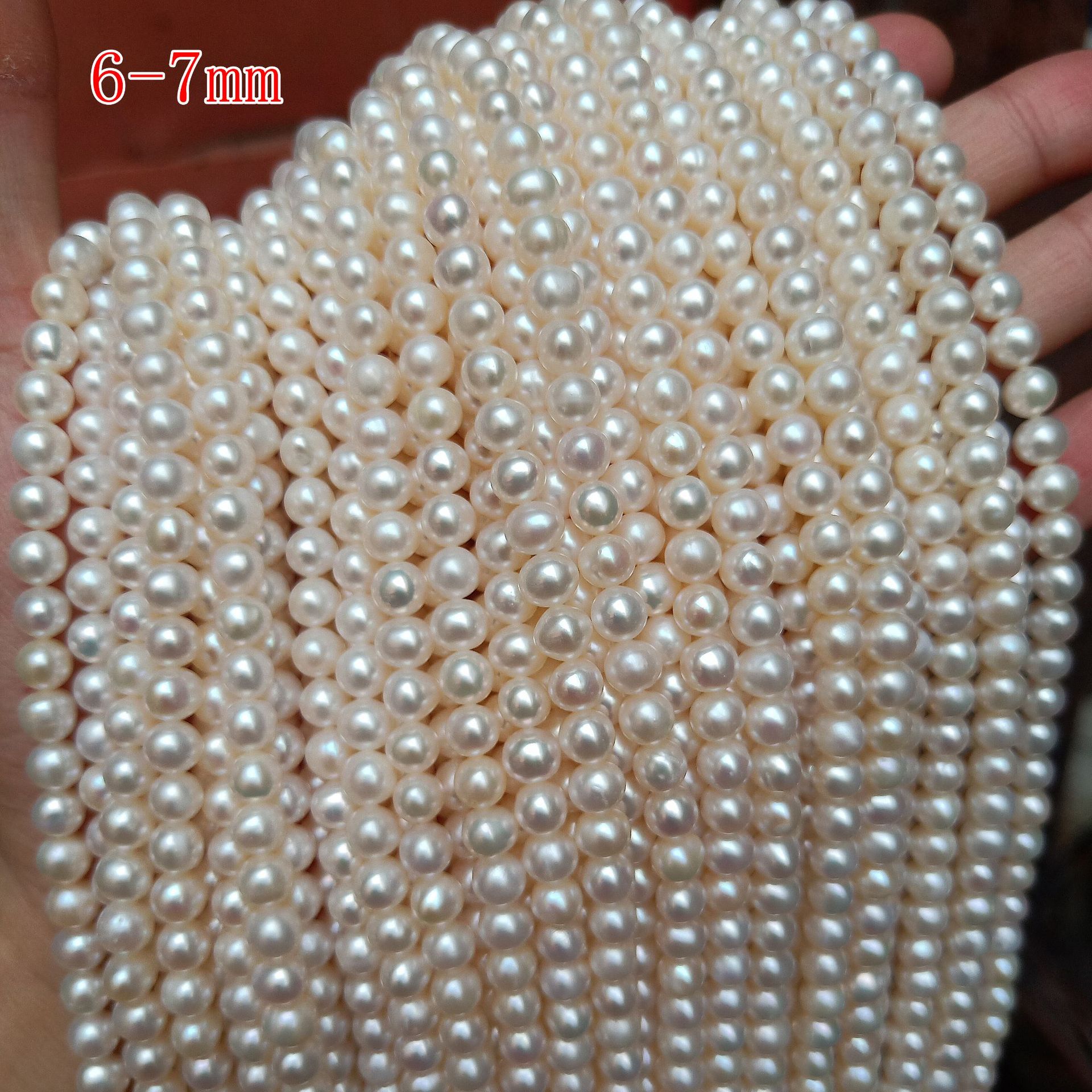 卸売り天然淡水真珠女6-7mm近円真真珠散珠半製品diyアクセサリービーズ