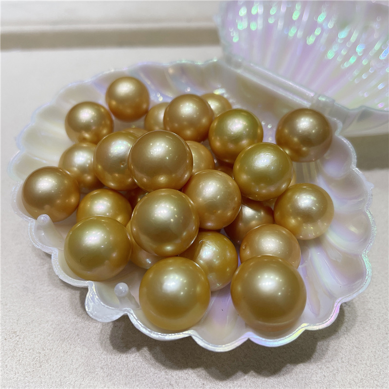 12-14mm金色の真円強光微瑕淡水真珠裸珠バラ真珠diyペンダントイヤリング指輪