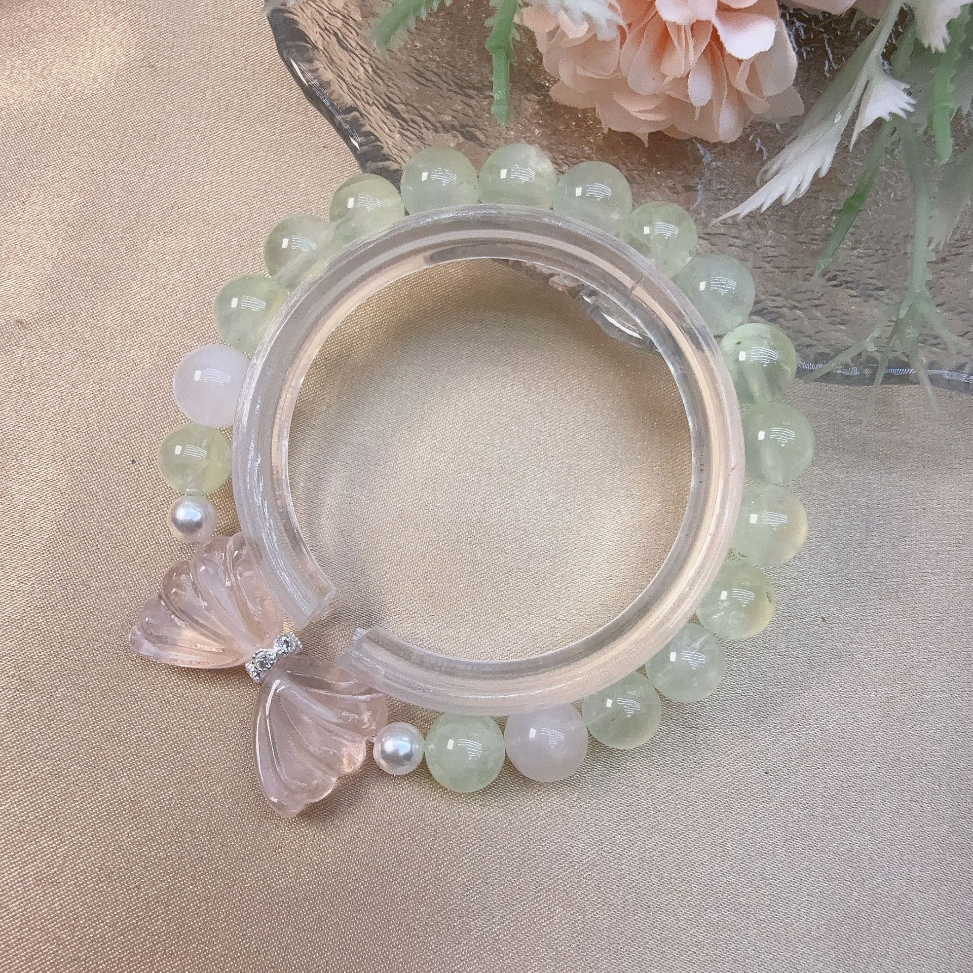 天然ブドウ石8mmブルー月光8.5mm貝珠氷透粉水晶蝶翼軽贅沢ファッション手串