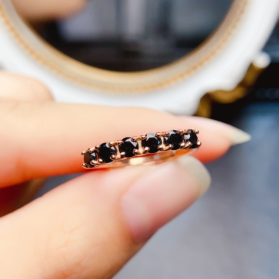 新天然黒尖晶指輪S925銀モザイク主石3*3mm百合ネット赤爆金女飾り卸売り