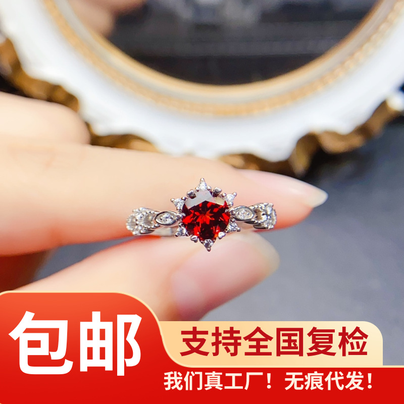 新天然ガーネット指輪S925銀モザイク主石5*5mm百合ネット赤爆金女飾り卸売り