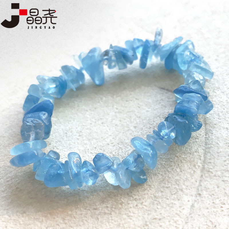 晶尭氷透海藍宝ブレスレット砂利手串単輪原石散珠青水晶アクセサリーファッションカップル