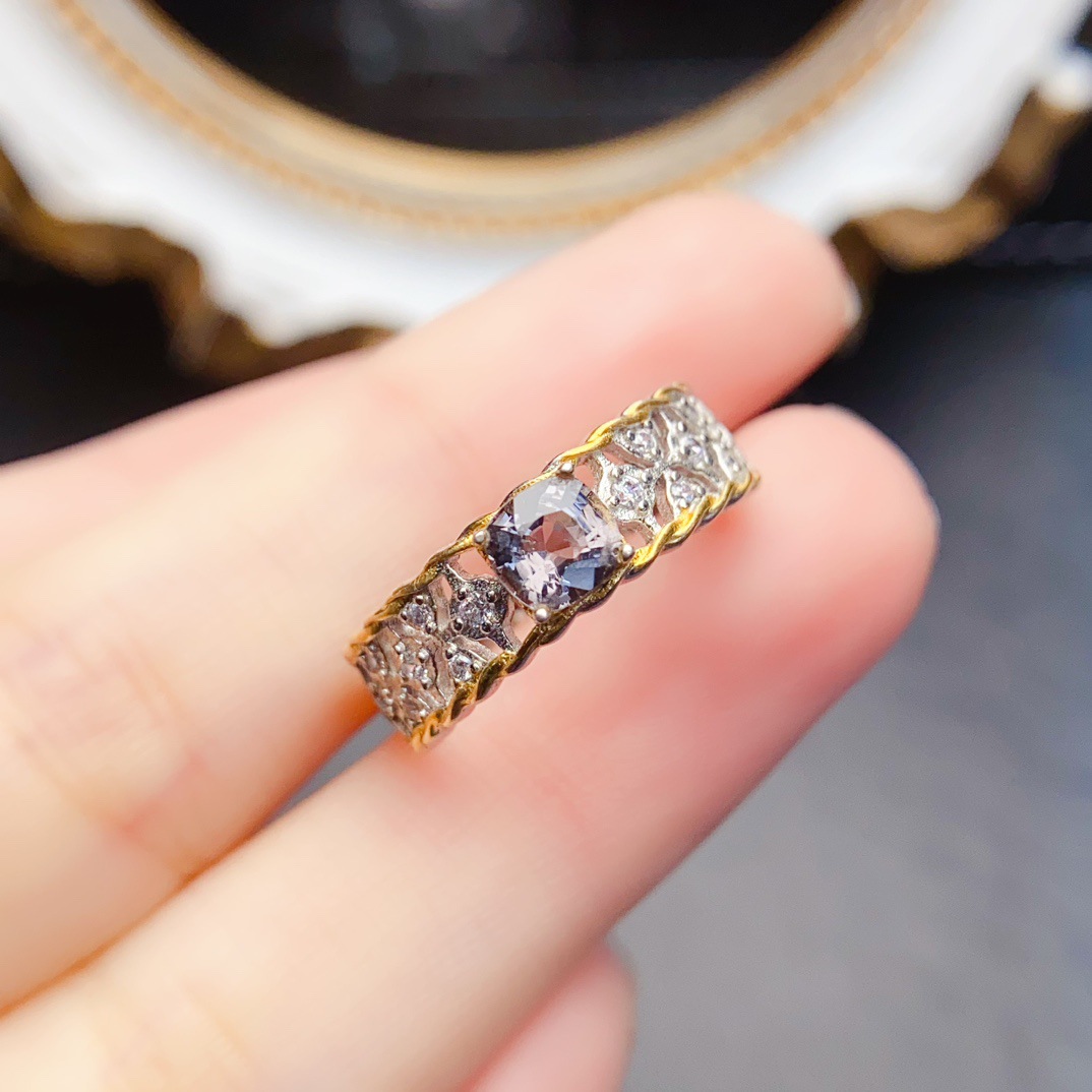 新天然スピネル指輪S925銀モザイク主石5*5mm百合ネット赤爆金女飾り卸売り