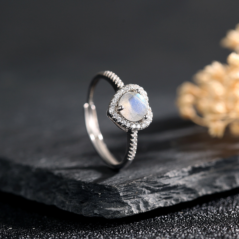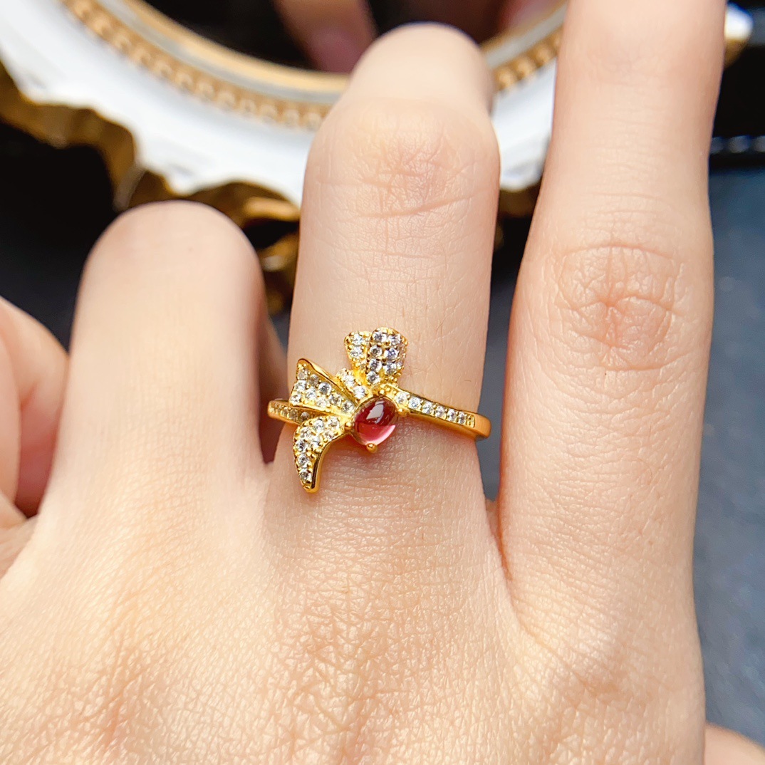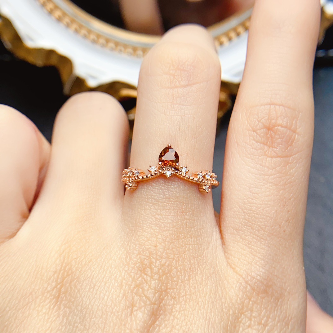 S925純銀天然ガーネット指輪開口ハート形爪はめ込みハトヘモグロビン透クロスボーダーアクセサリー生辰石