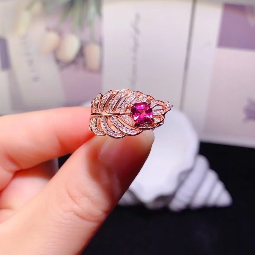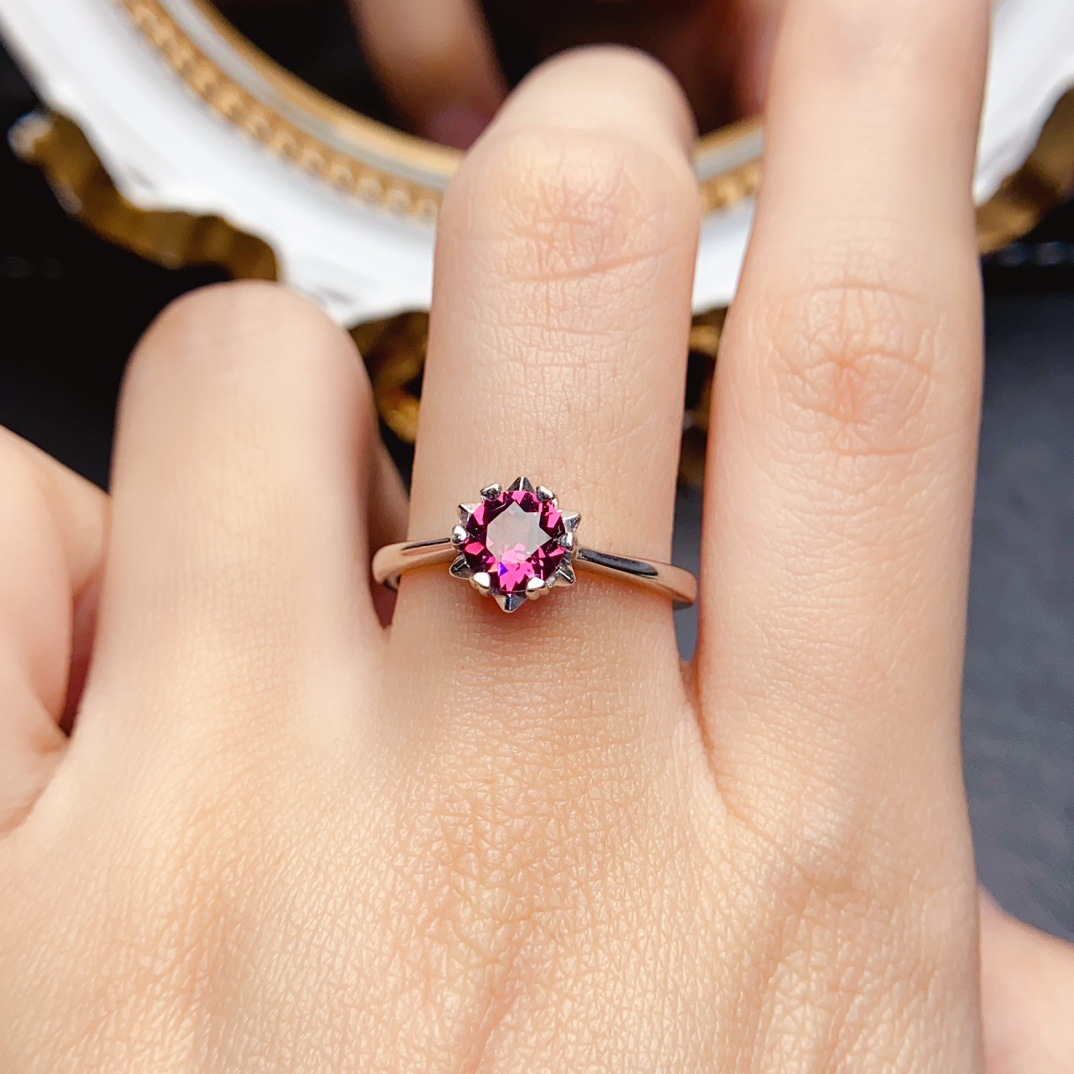 925銀は天然マグネシウムアルミニウムガーネットの指輪をはめ込んでいます。