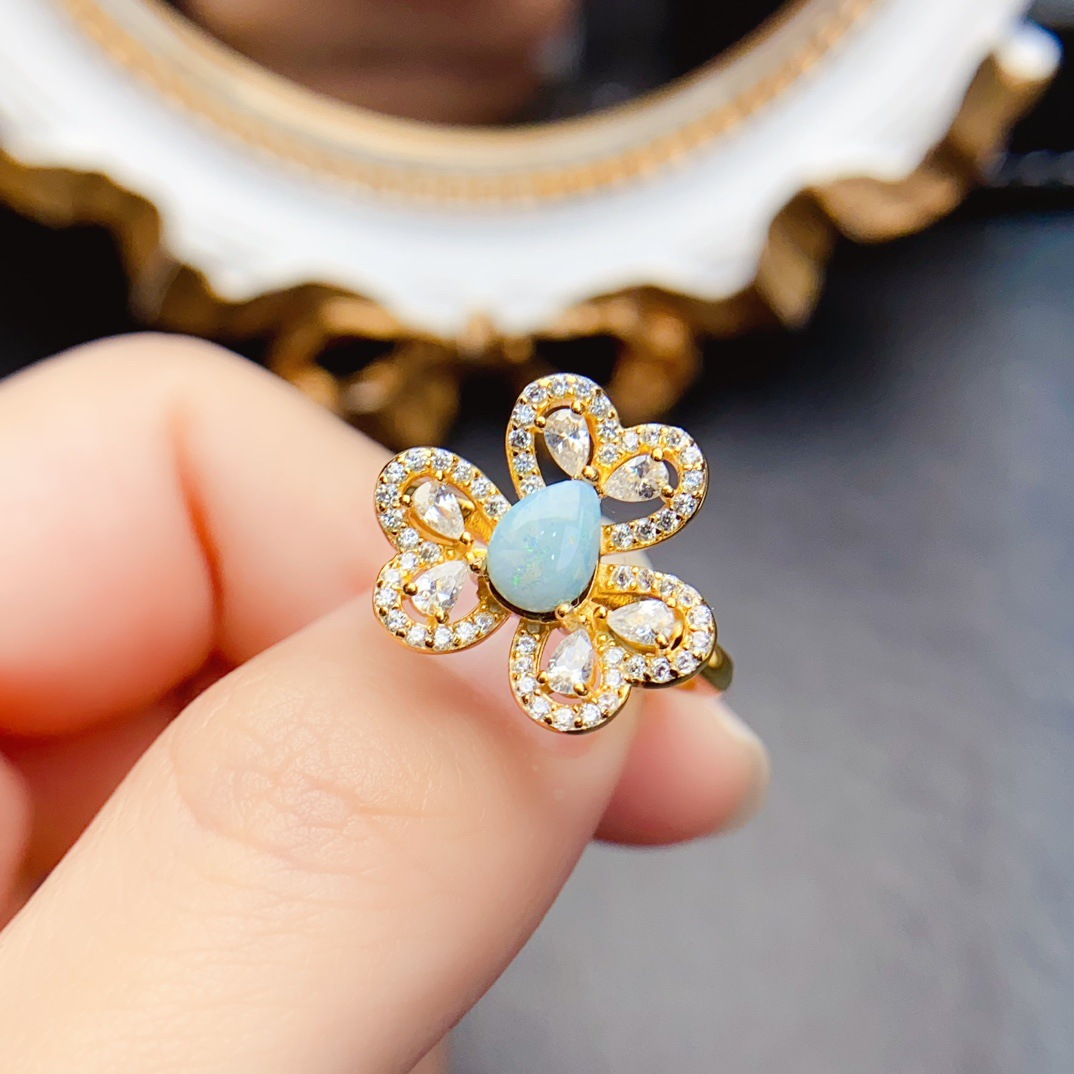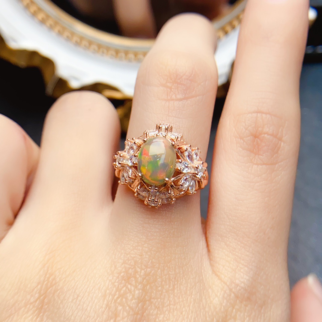 新天然欧泊指輪S925銀モザイク主7*9mm百合ネット赤爆金女飾り卸売り