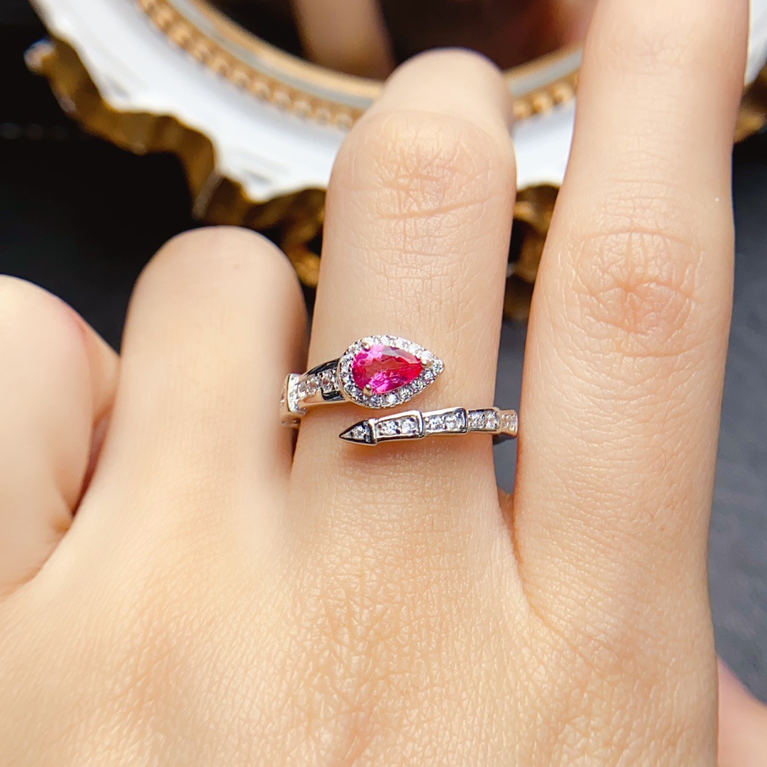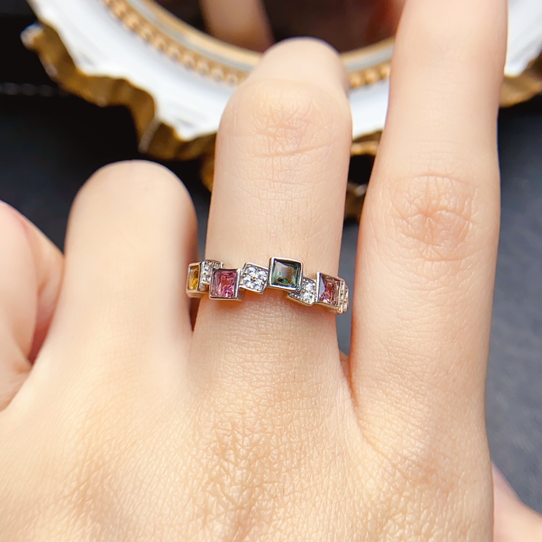 新天然碧璽指輪S925銀モザイク主3*3mm百合ネット紅爆金女飾り卸売り