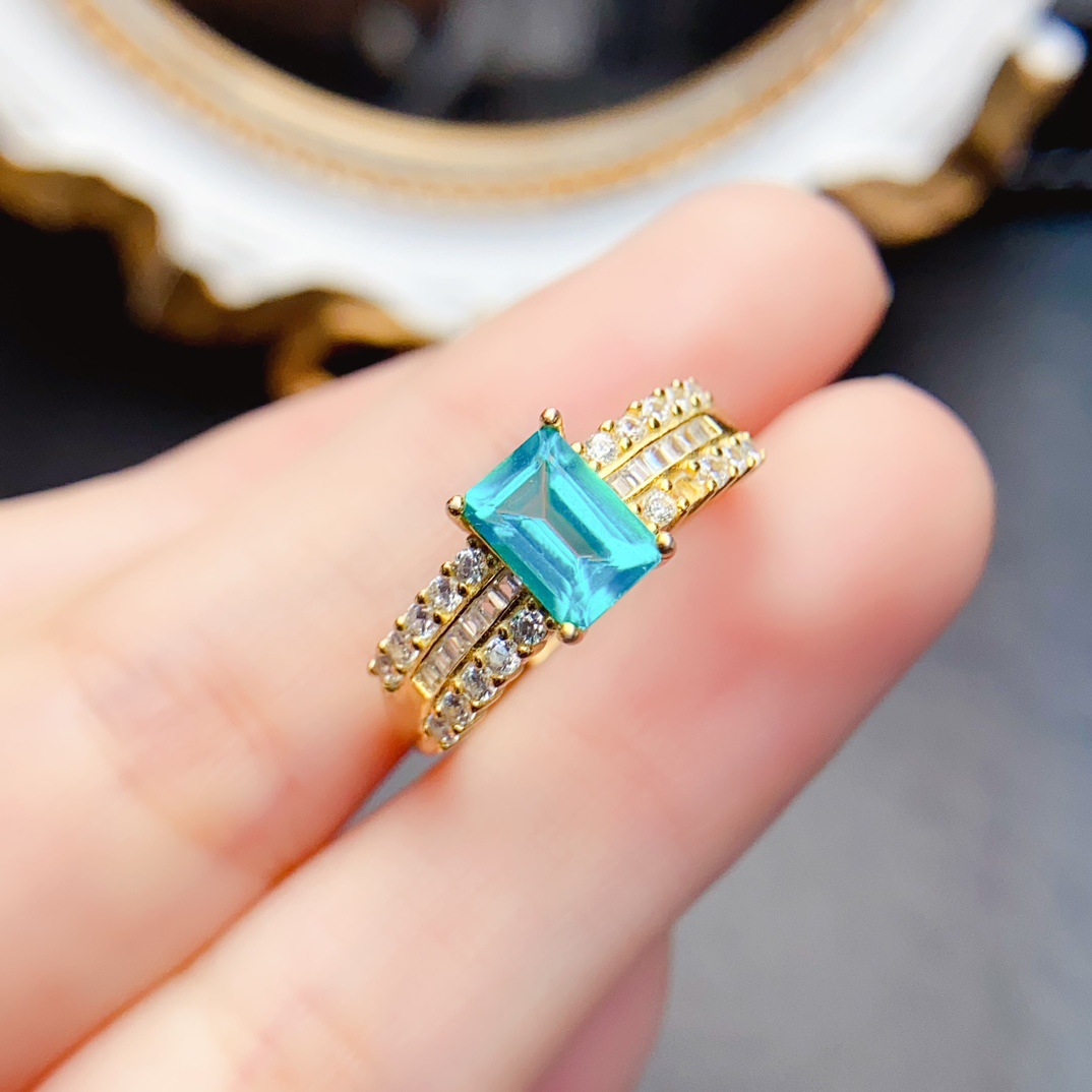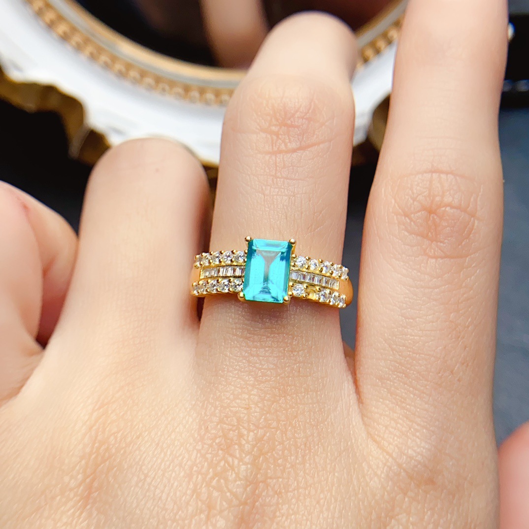 新天然海藍宝指輪S925銀モザイク主石5*7mm百合ネット赤爆金女飾り卸売り