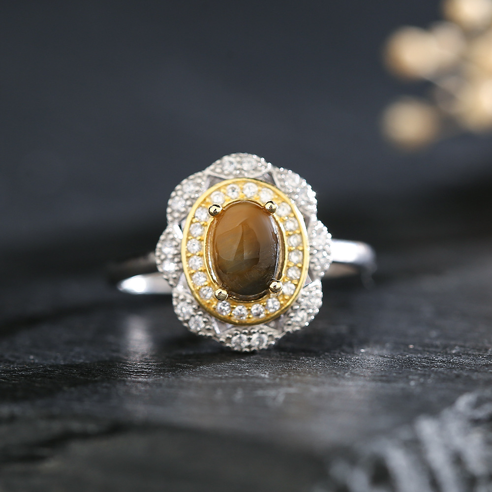 S925純銀天然ピーター石指輪色分解金メッキ卵面シンプルクロスボーダーetsyカスタム手作り指輪