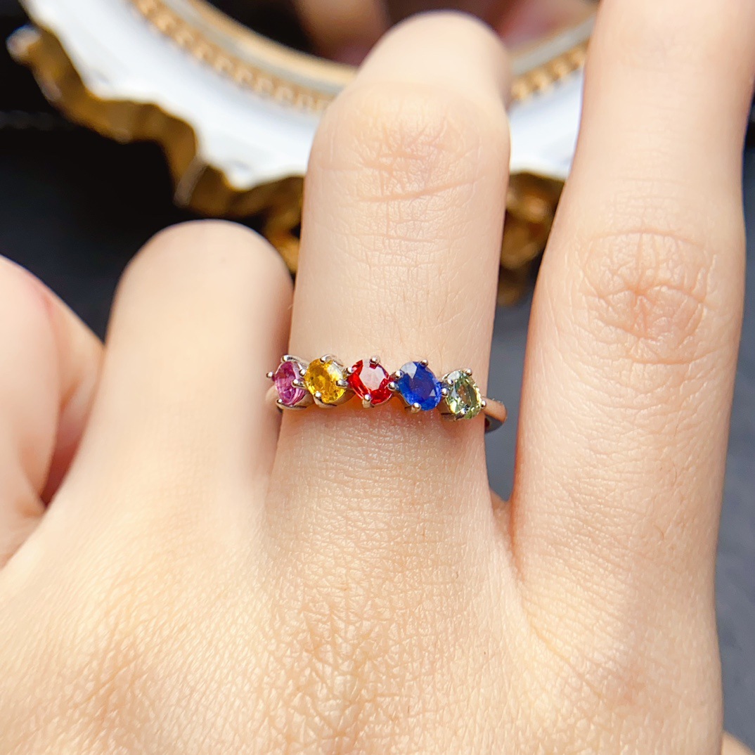 新天然カラー青宝指輪S925銀モザイク主石3*4mm百合ネット赤爆金女飾り卸売り