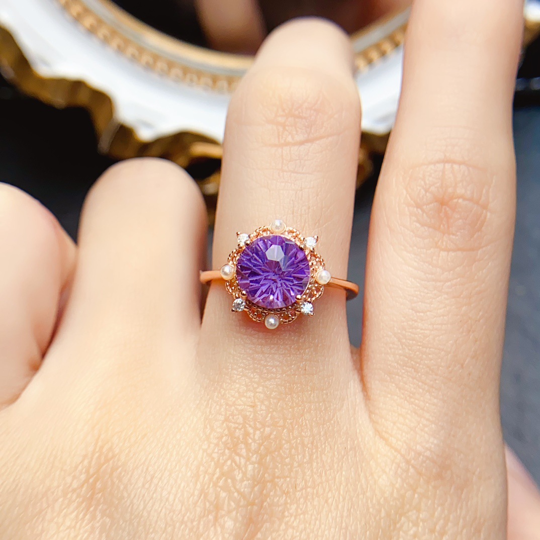 新天然紫水晶指輪S925銀モザイク主石8*8mm百合ネット赤爆金女飾り卸売り
