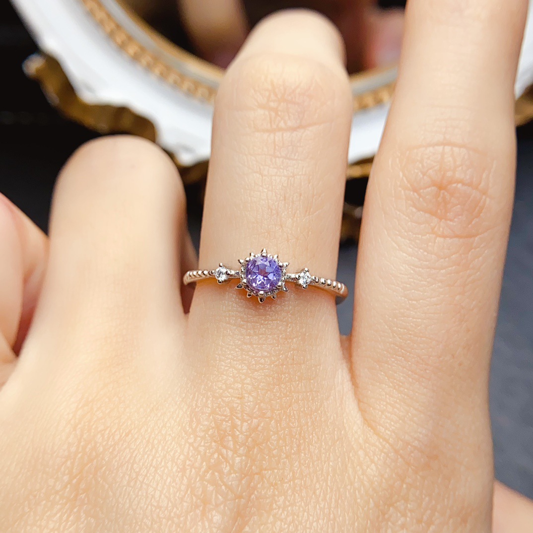 新天然紫水晶指輪S925銀モザイク主石4*4mm百合ネット赤爆金女飾り卸売り