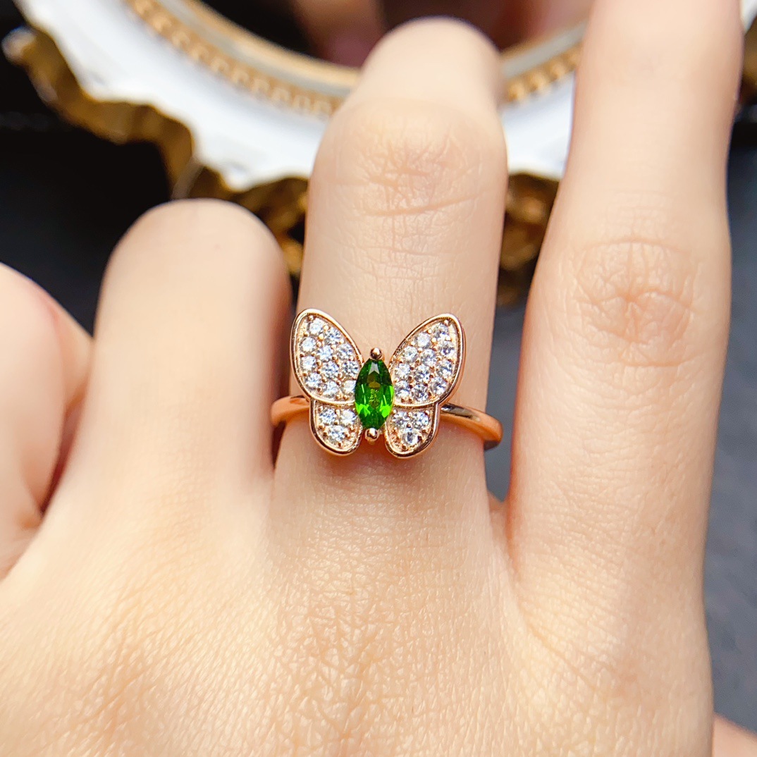 925銀は天然の透輝石の指輪をはめ込んでいます。