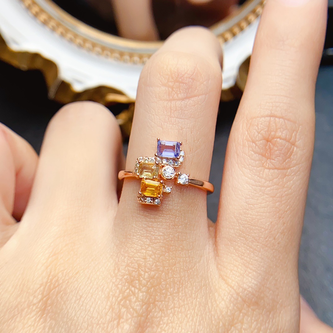 工場卸売り爆金天然彩藍宝指輪S925銀モザイク主石3*4人気欧米代発