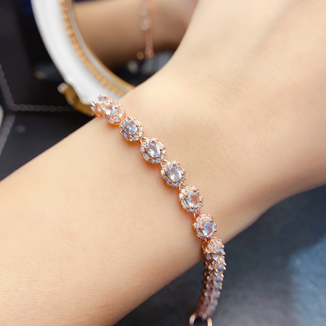 新天然粉藍宝ブレスレットs 925銀象眼主石3*5mm百合ネット紅爆金女性飾り卸売り