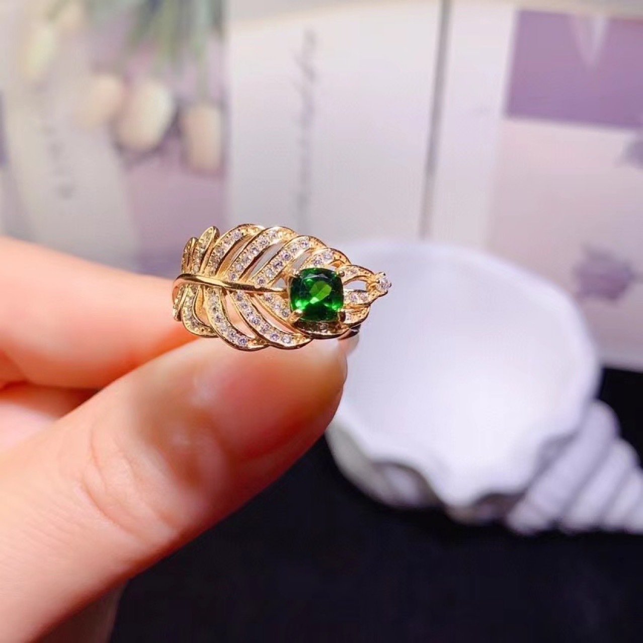 新天然透輝石指輪S925銀モザイク主石3 * 5mm百合ネット赤爆金女飾り卸売り