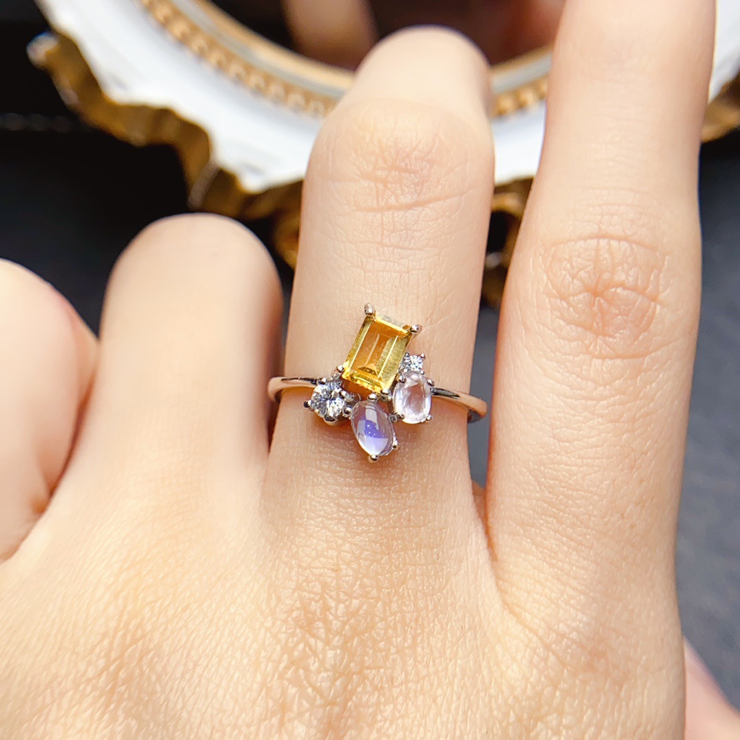 新天然黄水晶指輪S925銀モザイク主石4*6mm百合ネット赤爆金女飾り卸売り