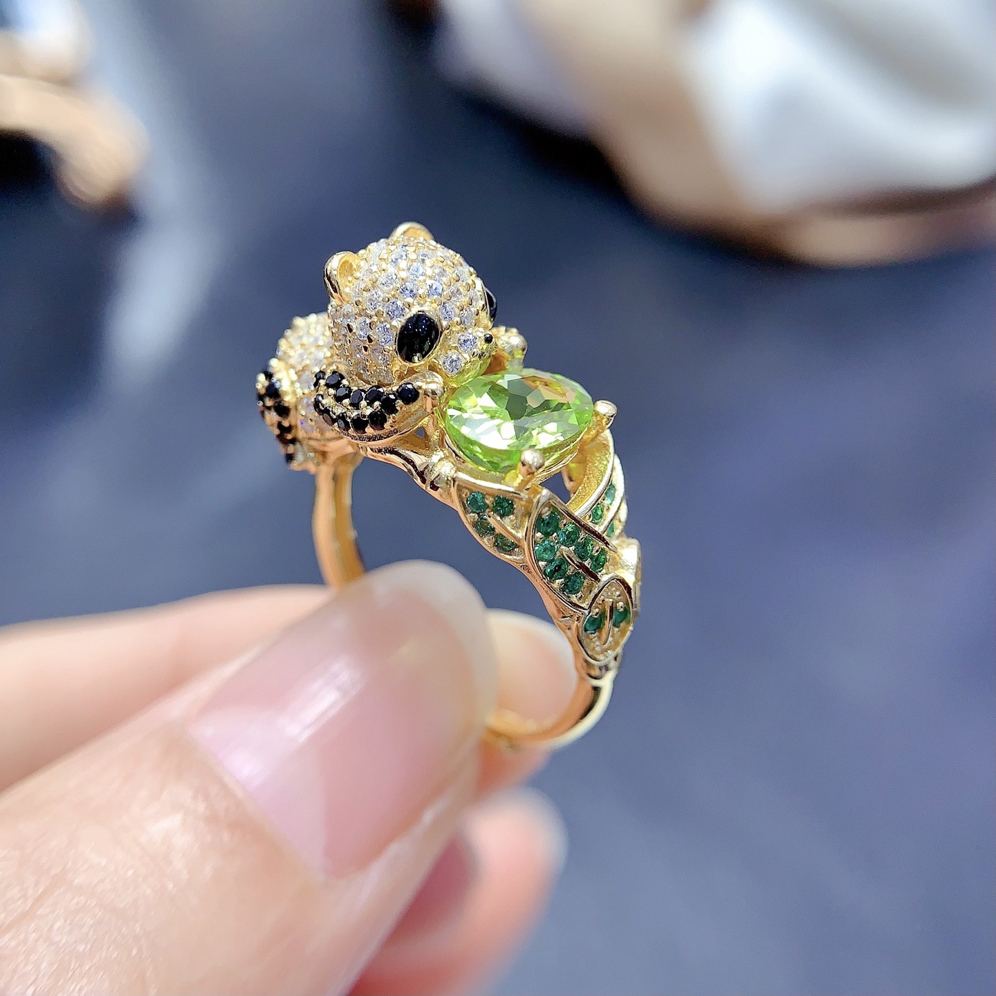 新しい天然オリビン指輪S925銀モザイク主石6*8mm百合ネット赤爆金女飾り卸売り