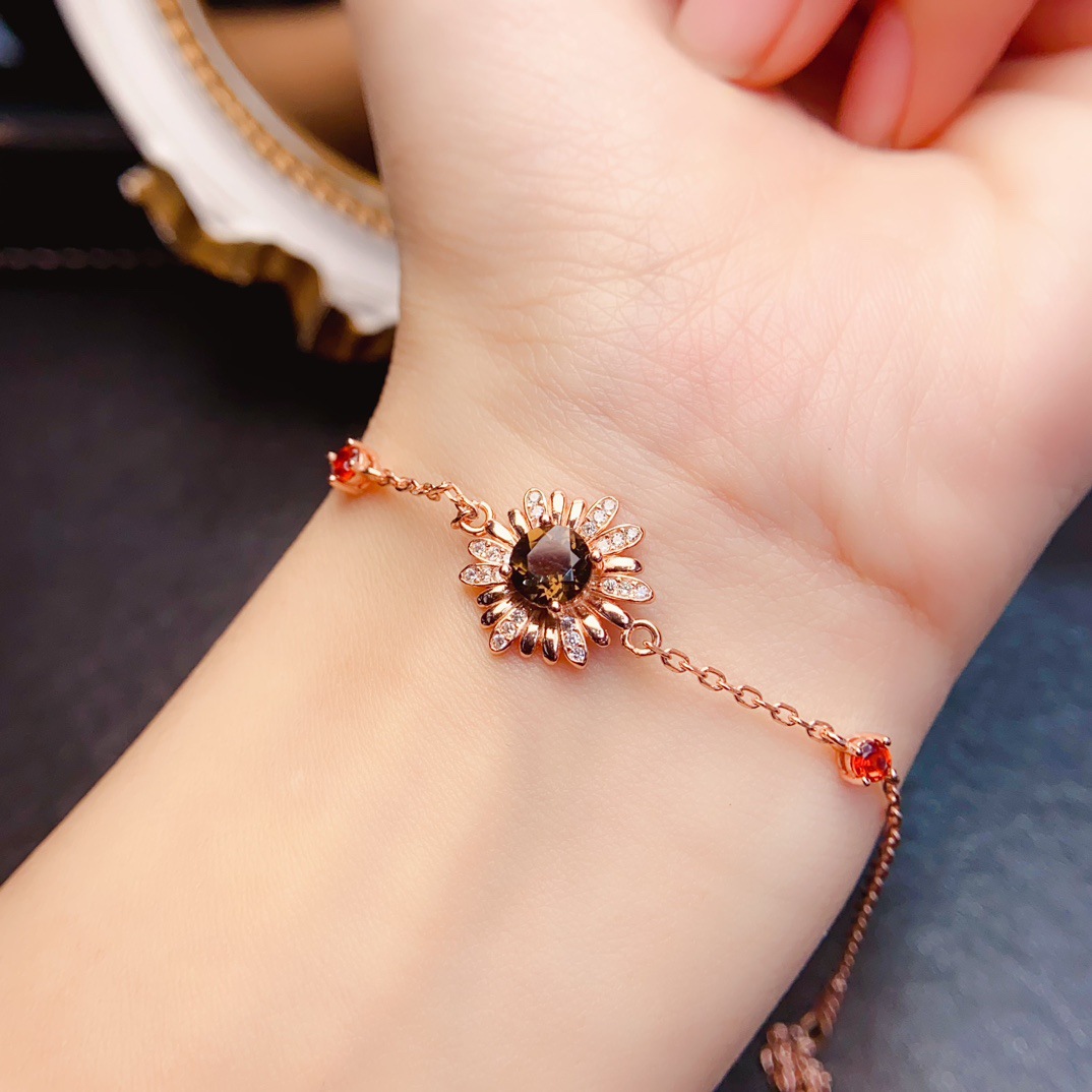 新天然茶水晶ブレスレットS925銀モザイク主石6*6mm百合ネット赤爆金女飾り卸売り