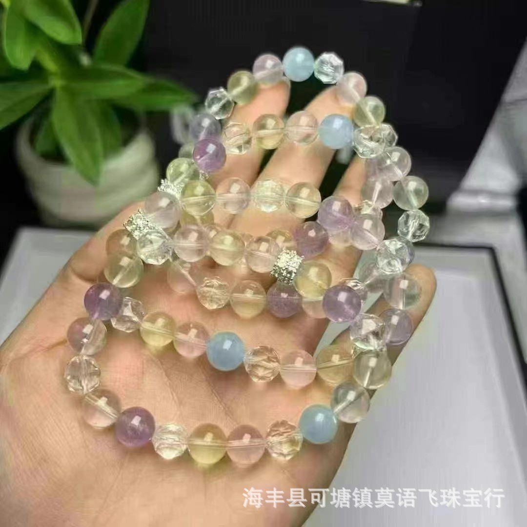 天然水晶多宝ブレスレットラベンダー星光粉レモン結晶海藍宝白水晶diyアクセサリー9.5mm円