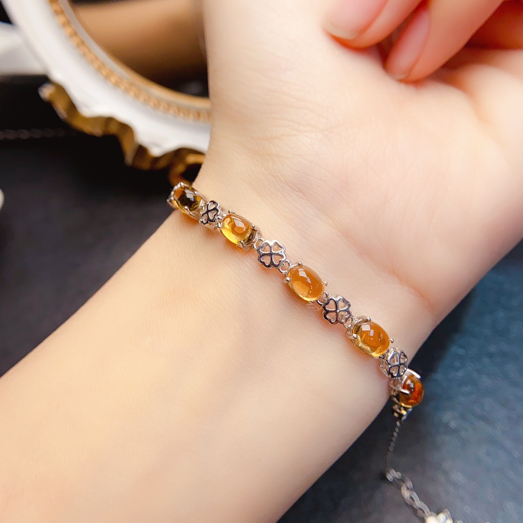 新天然黄水晶ブレスレットS925銀モザイク主石4*6mm百合ネット赤爆金女性飾り卸売り