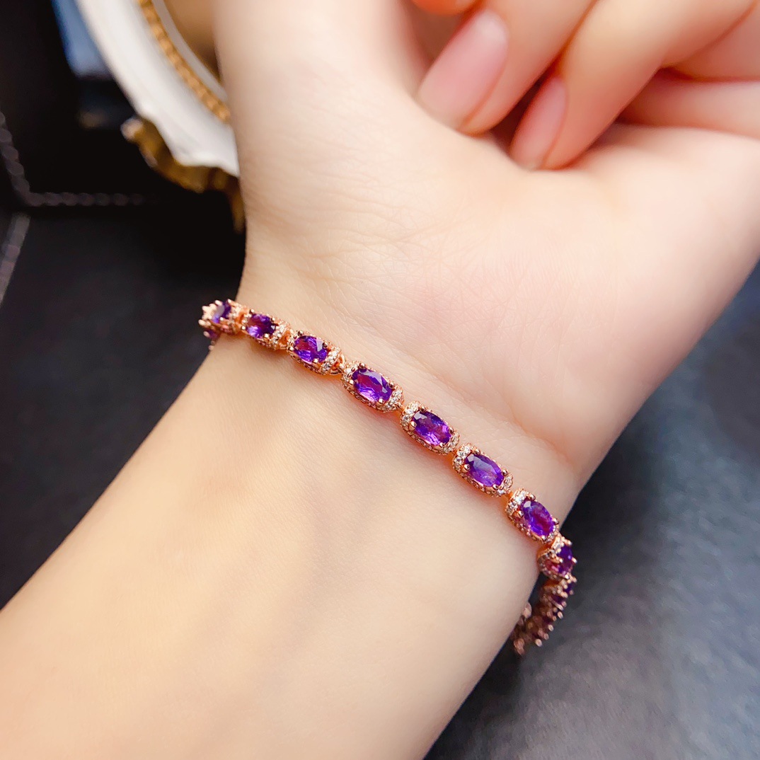 新天然紫水晶ブレスレットS925銀モザイク主石3 * 5mm百合ネット赤爆金女性飾り卸売り
