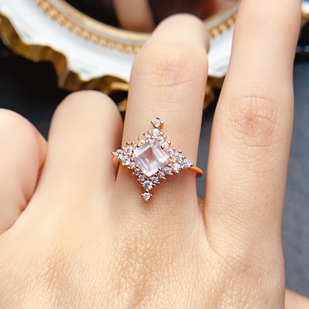 新天然粉水晶指輪S925銀モザイク主石6*6mm百合ネット赤爆金女飾り卸売り