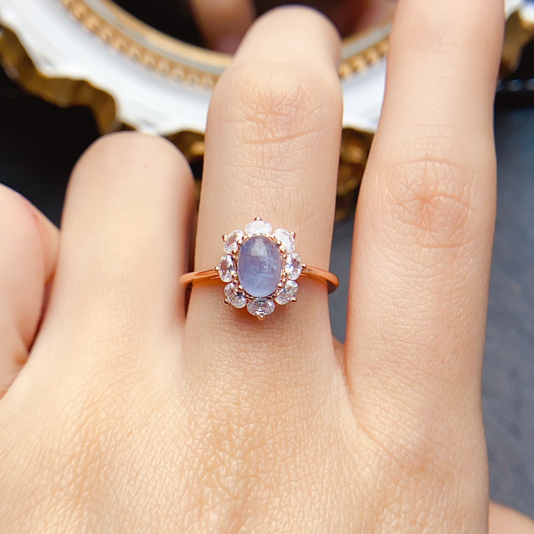 新天然海藍宝指輪S925銀モザイク主石6*8mm百合ネット赤爆金女飾り卸売り