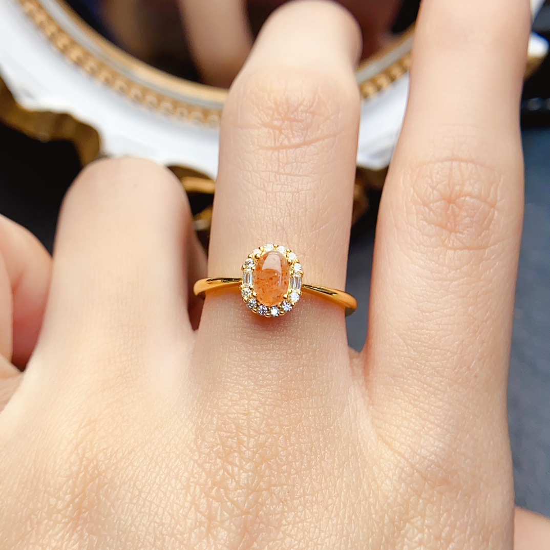 S925純銀天然太陽石指輪フェンダー色2色金メッキ卵面シンプルクロスボーダーetsy手作り指輪