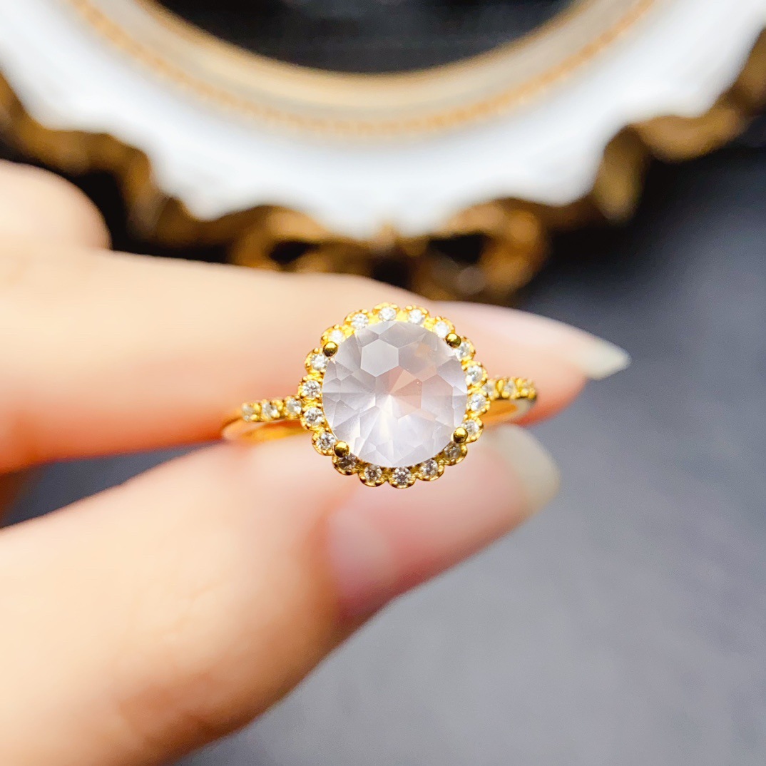 新天然粉水晶指輪S925銀モザイク主石6*6mm百合ネット赤爆金女飾り卸売り