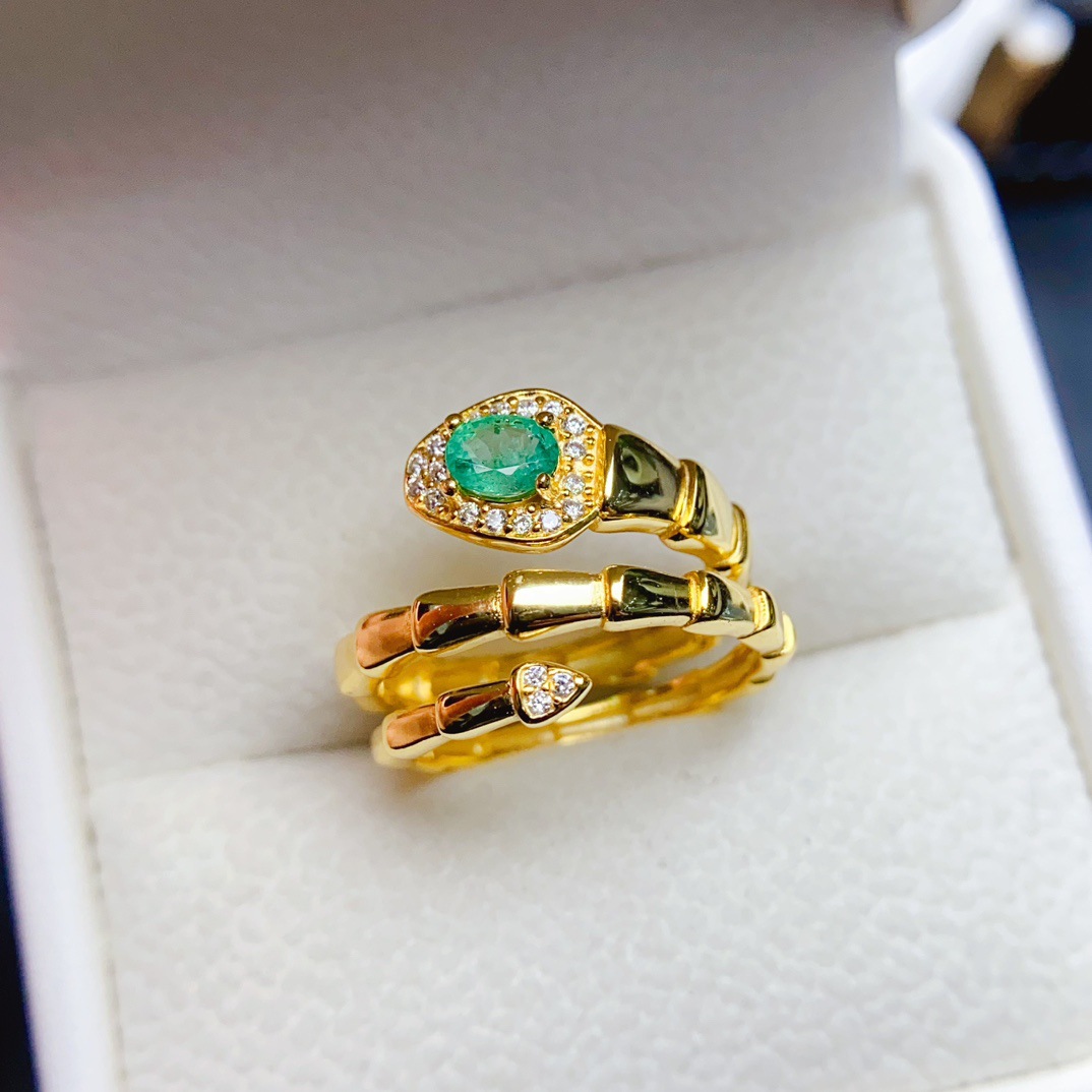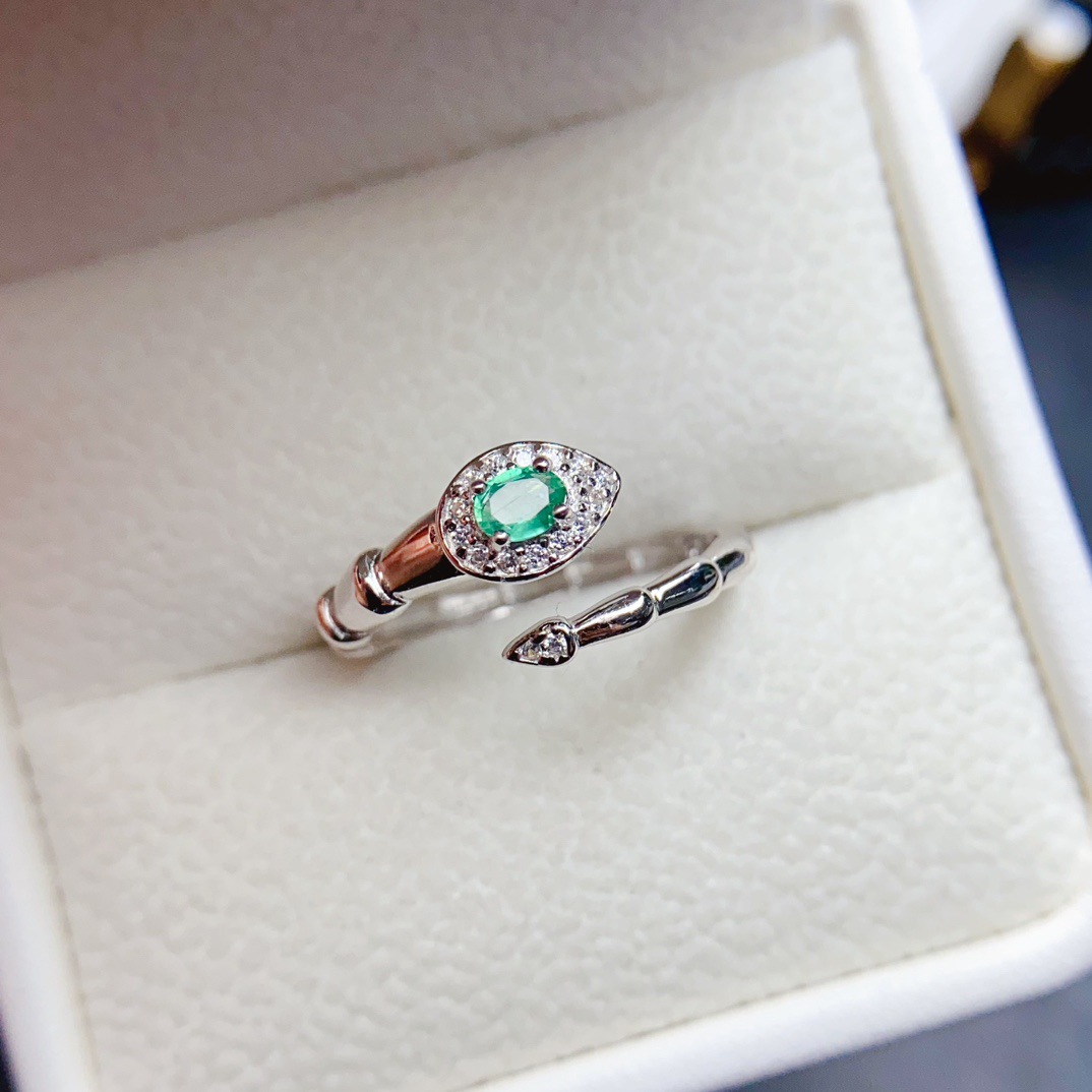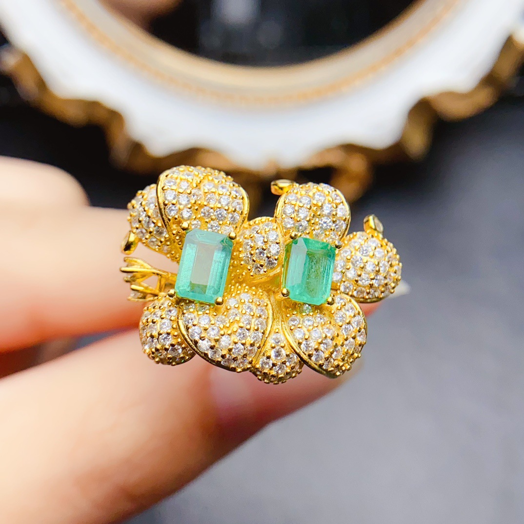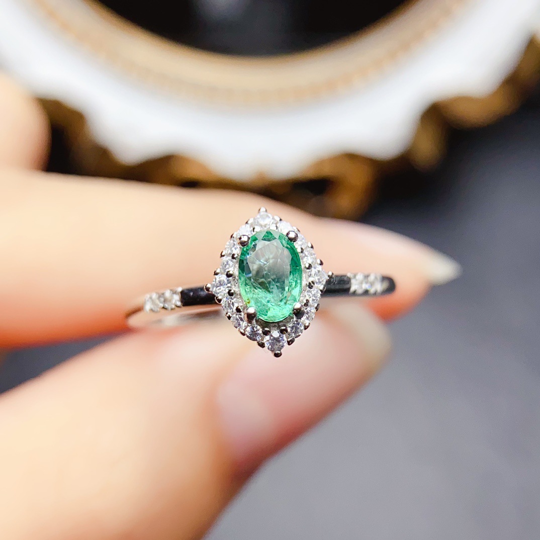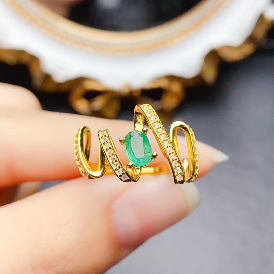 新しい天然祖母緑指輪S925銀モザイク主4*6mm百合ネット赤爆金女飾り卸売り