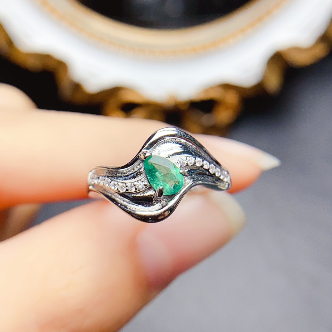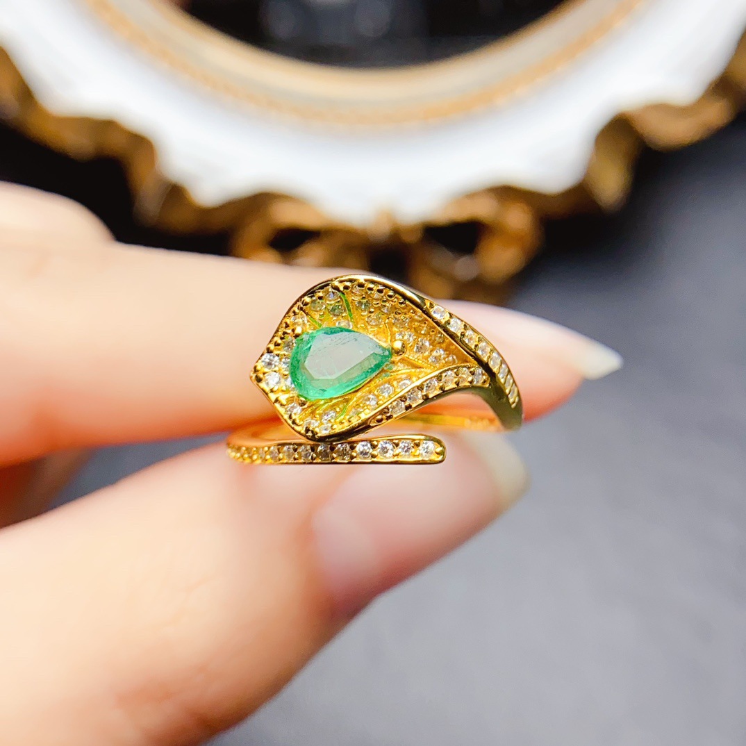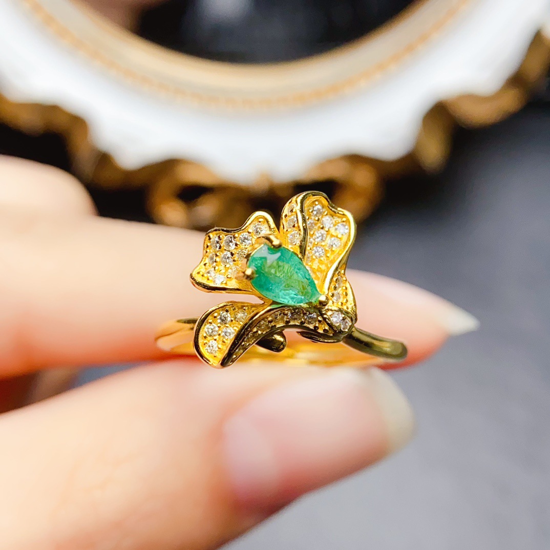 新しい天然祖母緑指輪S925銀モザイク主3 * 5mm百合ネット赤爆金女飾り卸売り