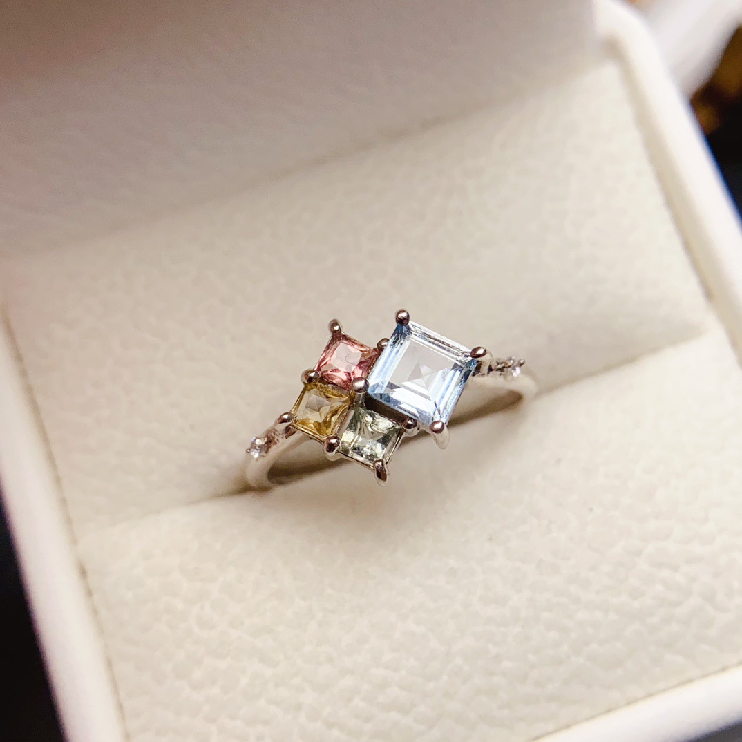 工場卸売り爆金天然碧璽指輪S925銀モザイク主石3*5人気欧米代発