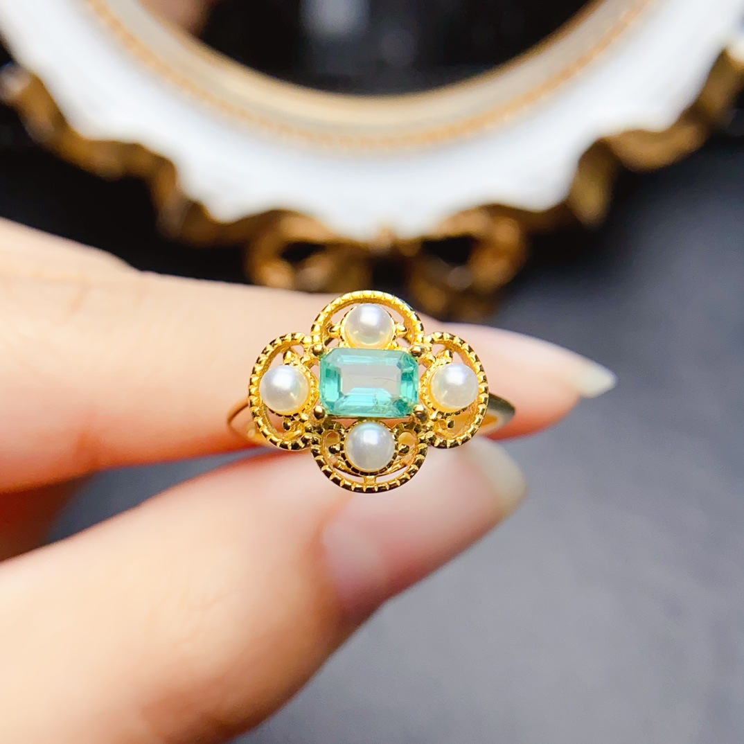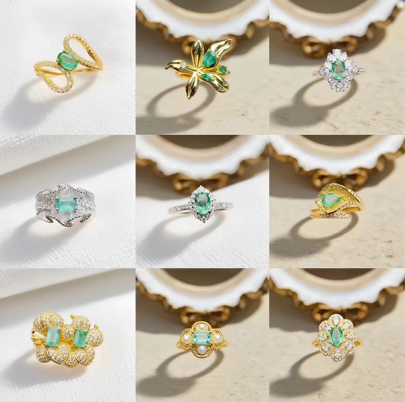 新しい天然祖母緑指輪S925銀モザイク主3*3mm百合ネット赤爆金女飾り卸売り