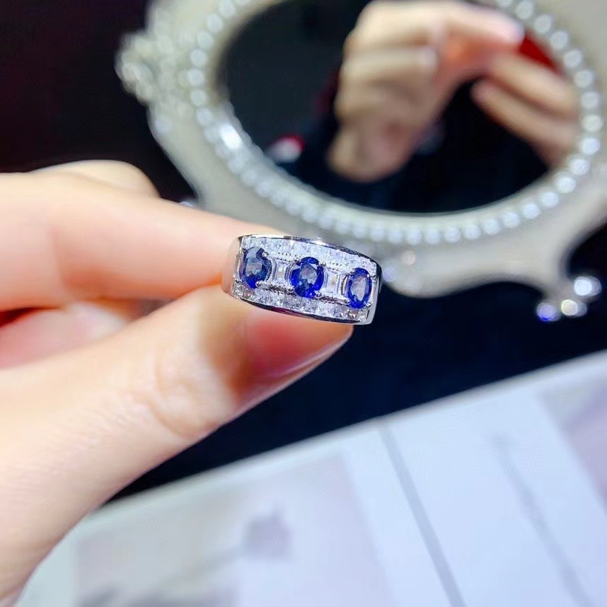 工場卸売り起爆天然サファイア指輪S925銀モザイク主石4*5人気欧米