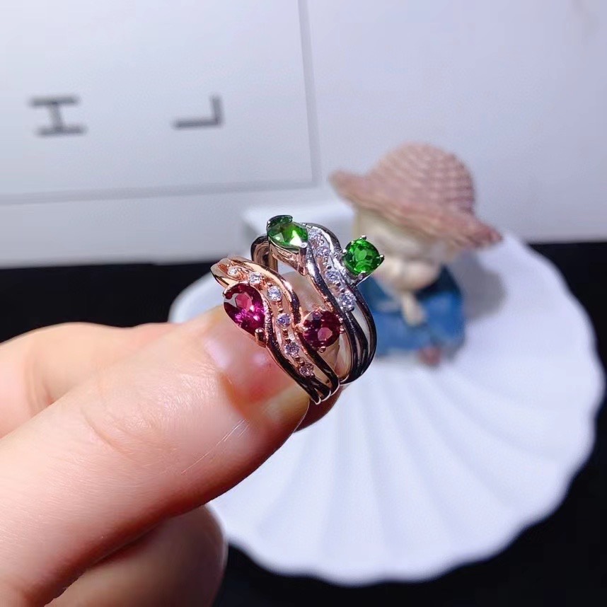 天然起爆透輝石マグネシウムアルミガーネット指輪S925銀女飾り主石: 円4.4*6人気