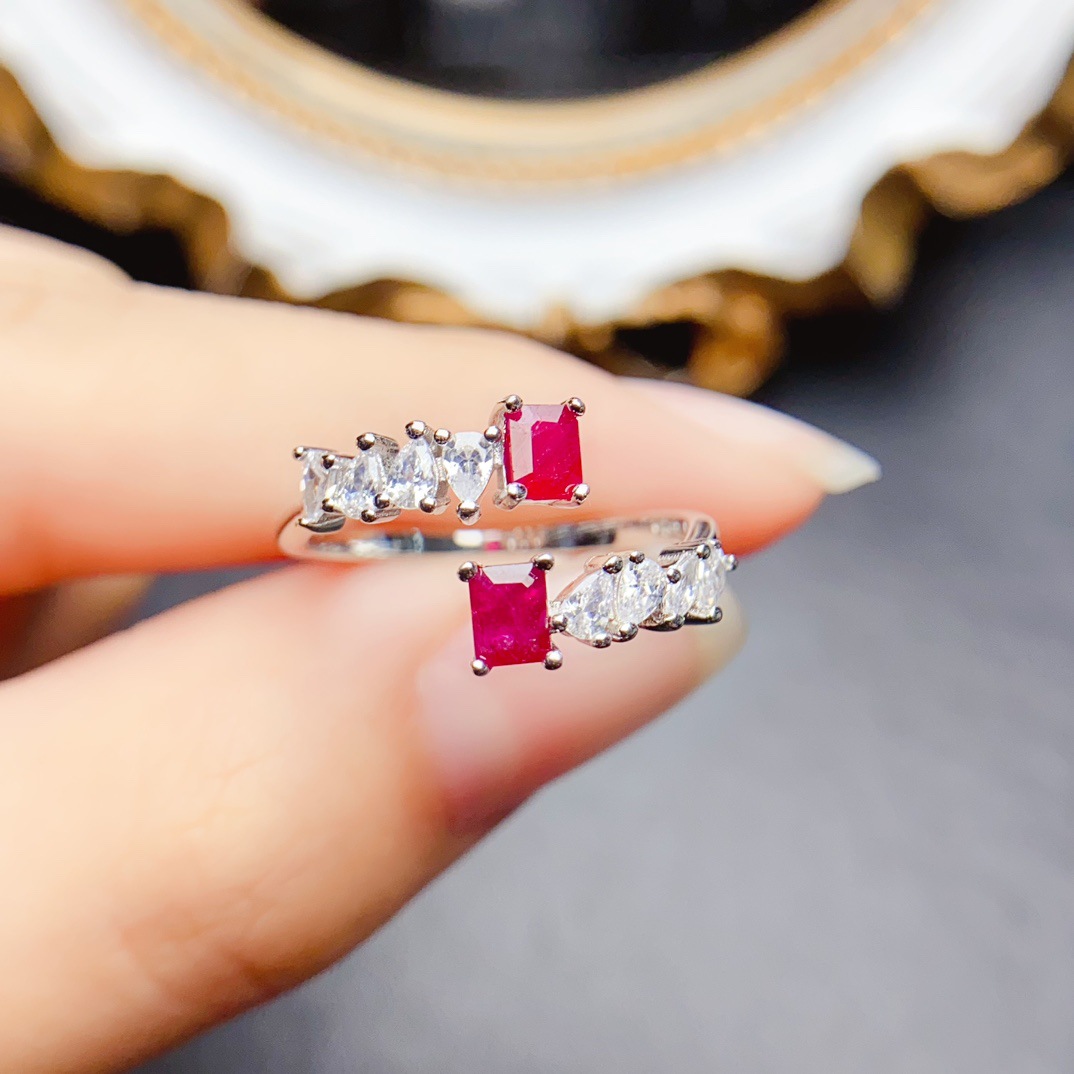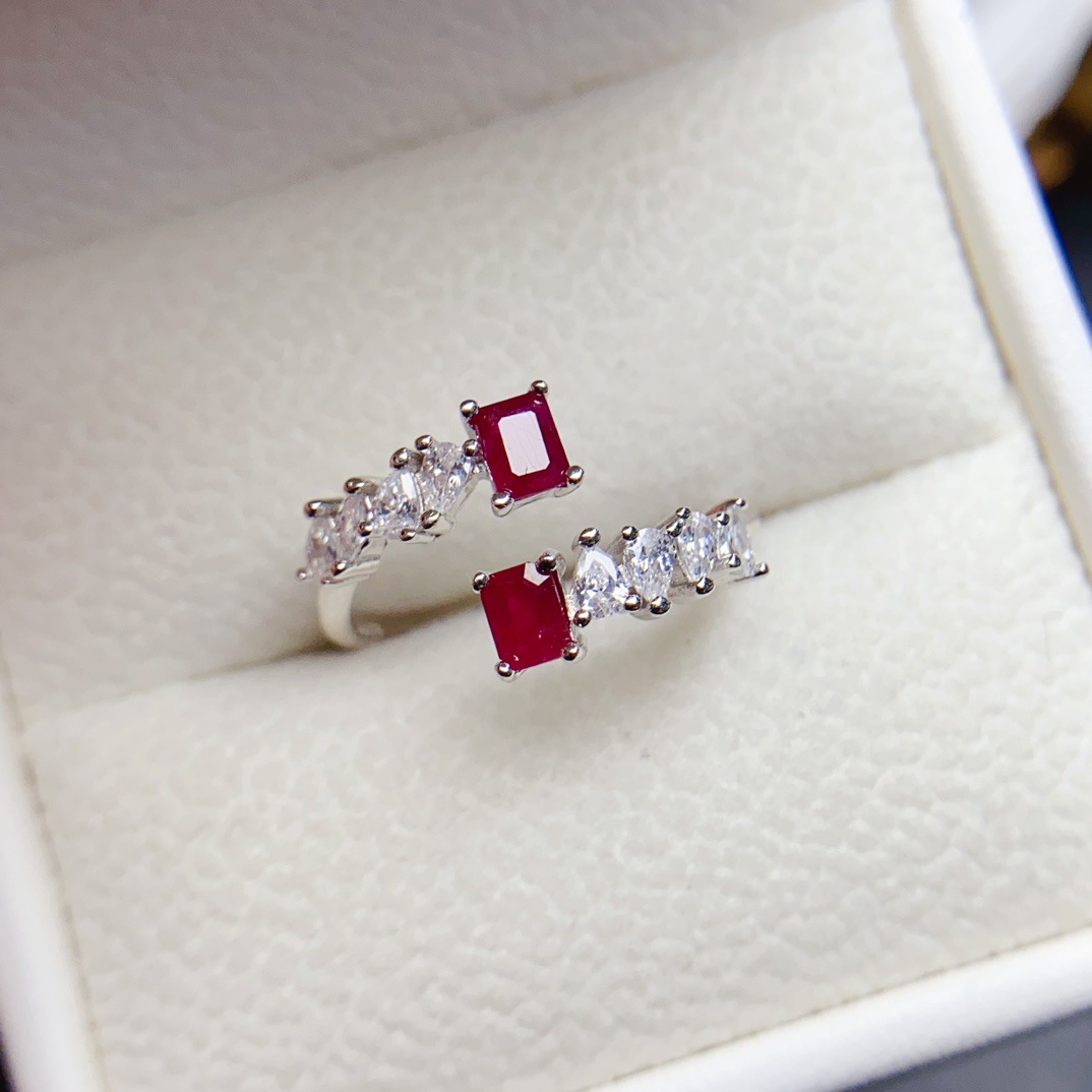 工場卸売り起爆天然ルビー指輪S925銀モザイク主石3*4人気欧米代発