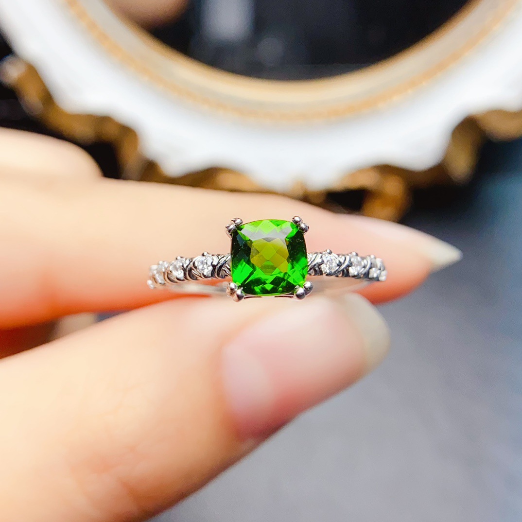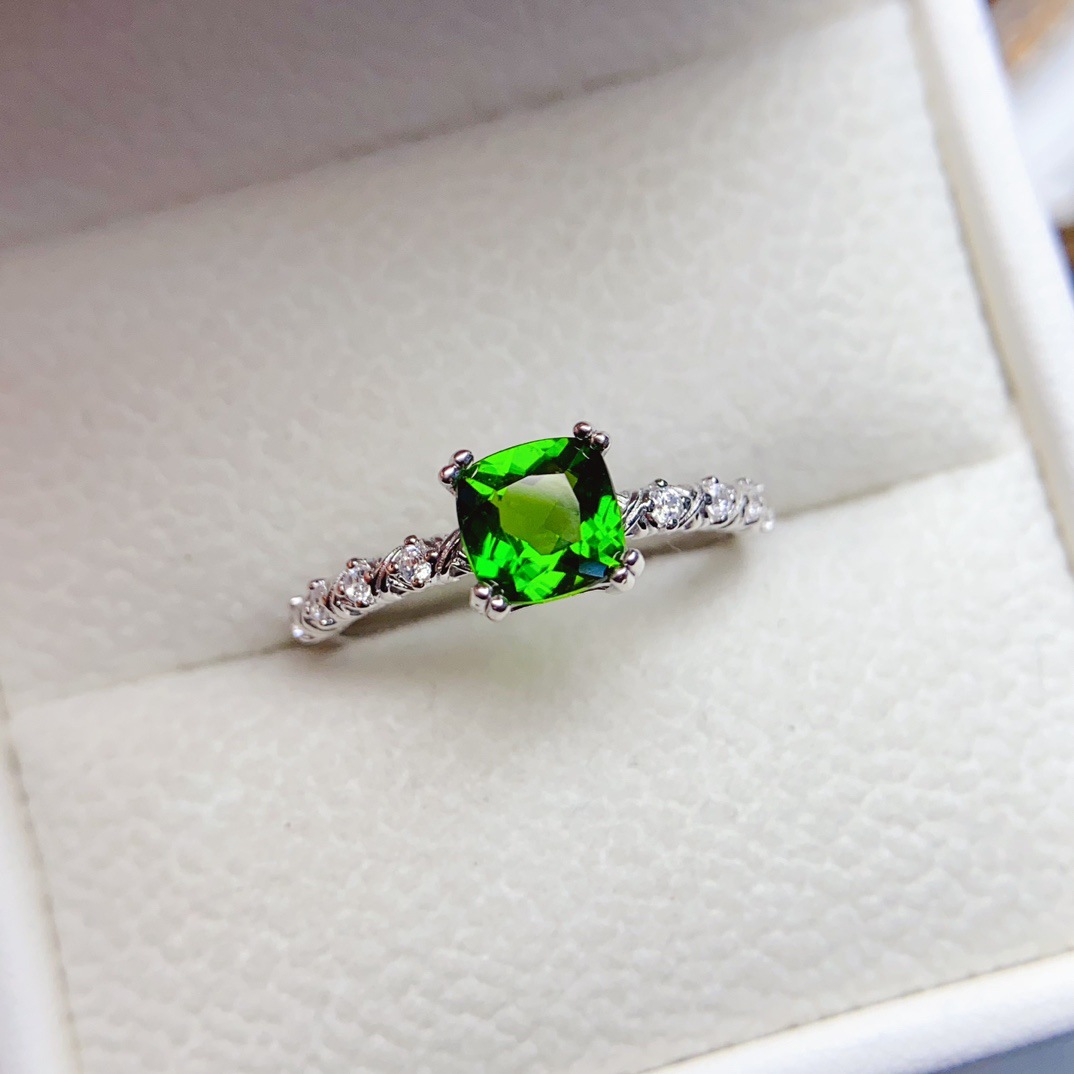 新天然透輝石指輪S925銀モザイク主石6*6mm百合ネット赤爆金女飾り卸売り