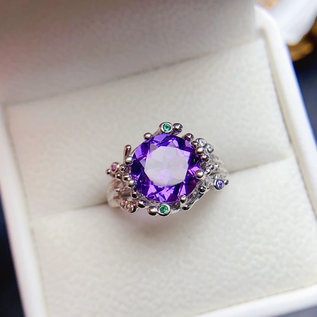 工場卸売り爆金天然紫水晶指輪S925銀モザイク主石10*10人気欧米の世代