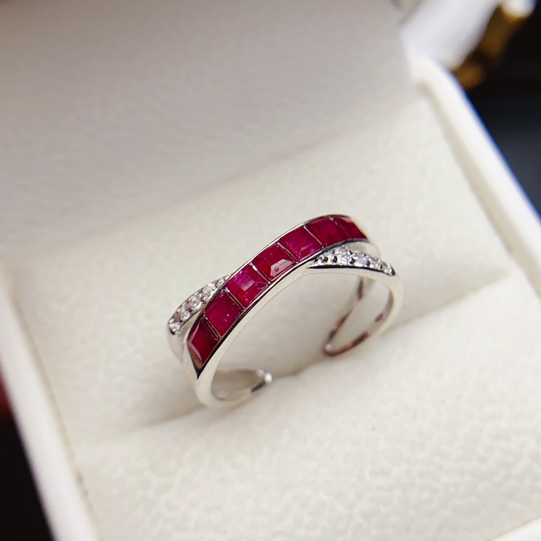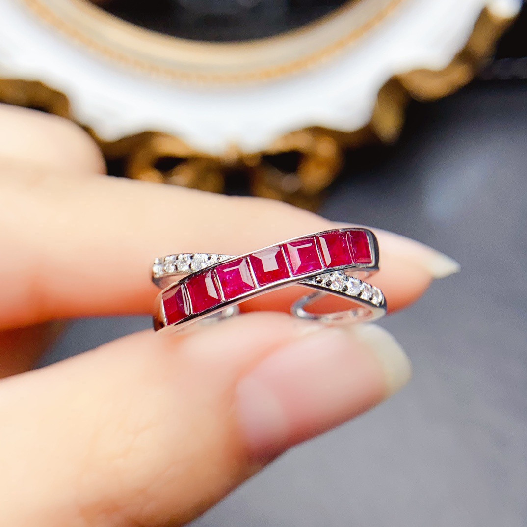 工場卸売り起爆天然ルビー指輪S925銀モザイク主石3*3人気欧米代発