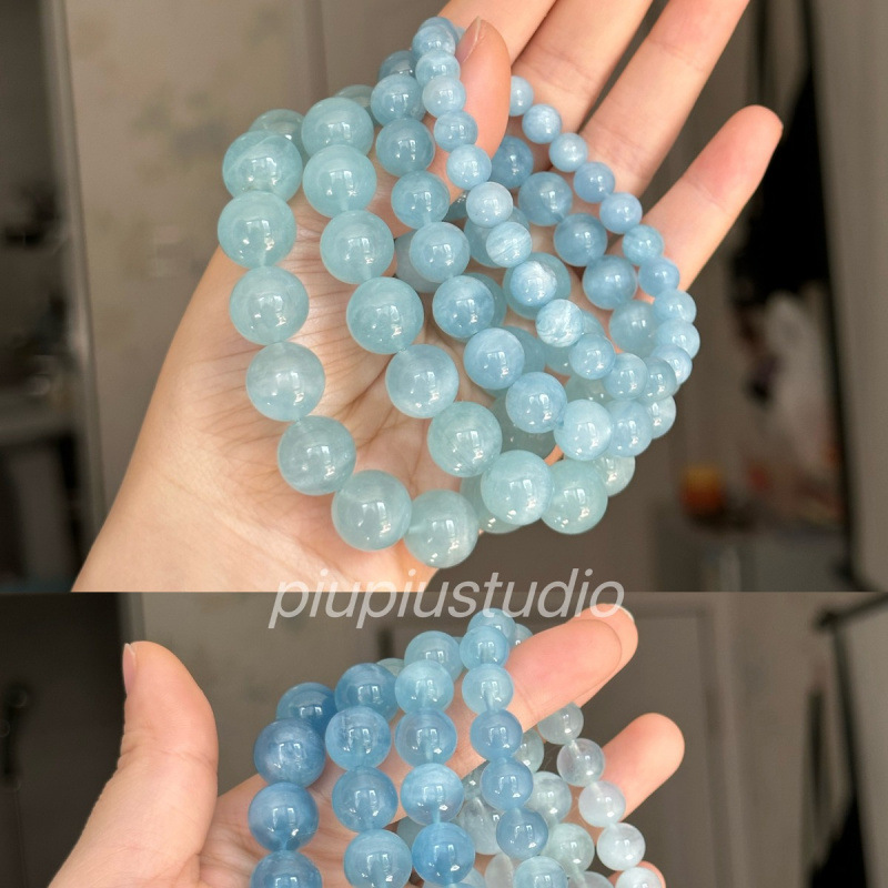 PiuPiuStudio/海藍宝手串天然星光猫眼グラデーション海藍宝水晶手串