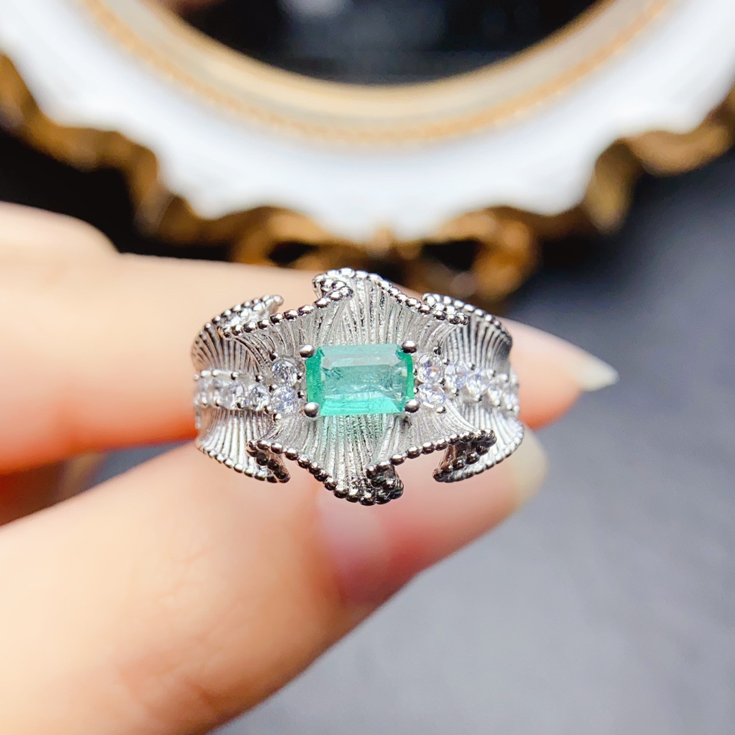 工場卸売り爆金天然祖母緑指輪S925銀モザイク主石4*6人気欧米代発