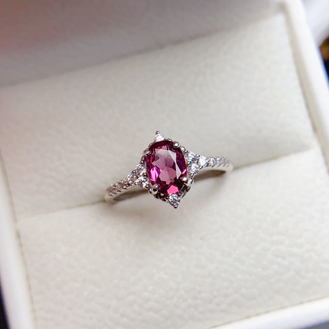 工場卸売り爆金天然ガーネット指輪S925銀モザイク主石5*7人気欧米代発
